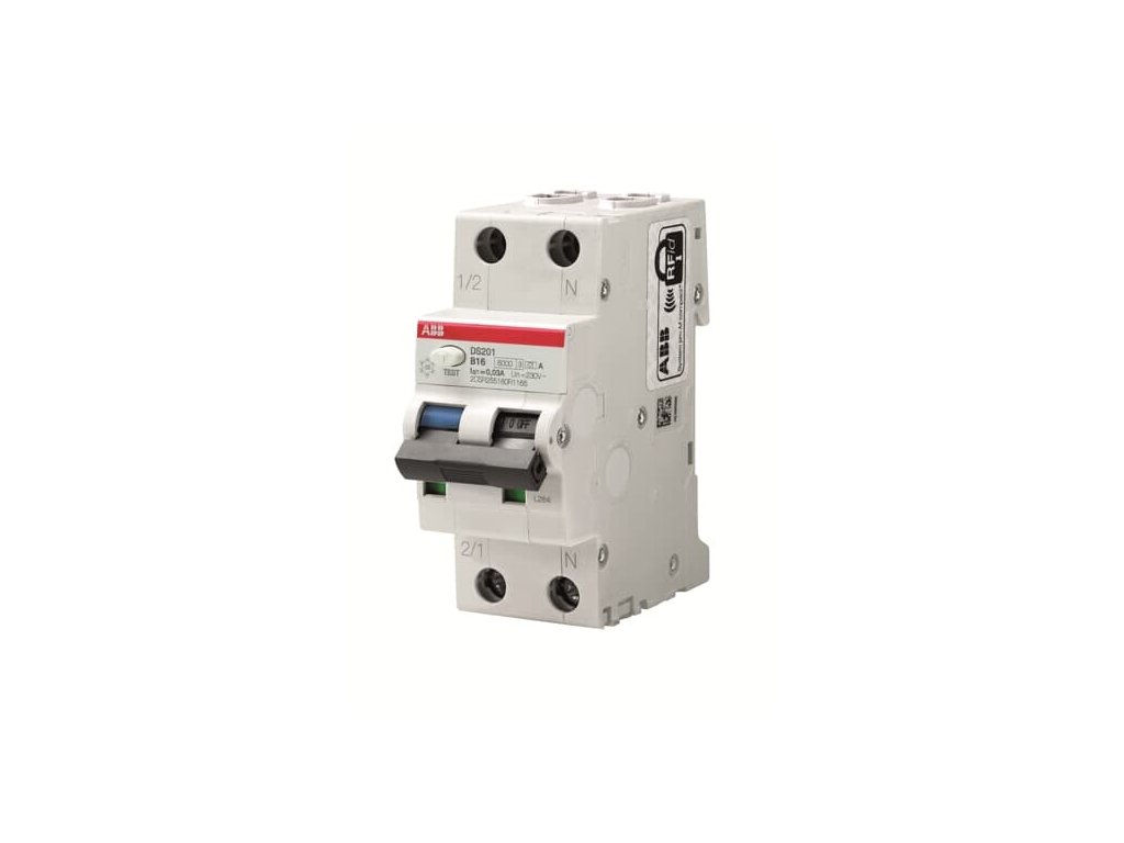 DS201 B16 A30; kombinace jistič/chránič; dvojpólový (1P+N); jmenovitý proud: 16A; citlivost: 30mA; charakteristika: B; zkratová odolnost: 6kA; Typ A – pro střídavý a pulzující stejnosměrný reziduální proud (určeno pro 1f obvody s usměrňovači)Doplňkové parametry