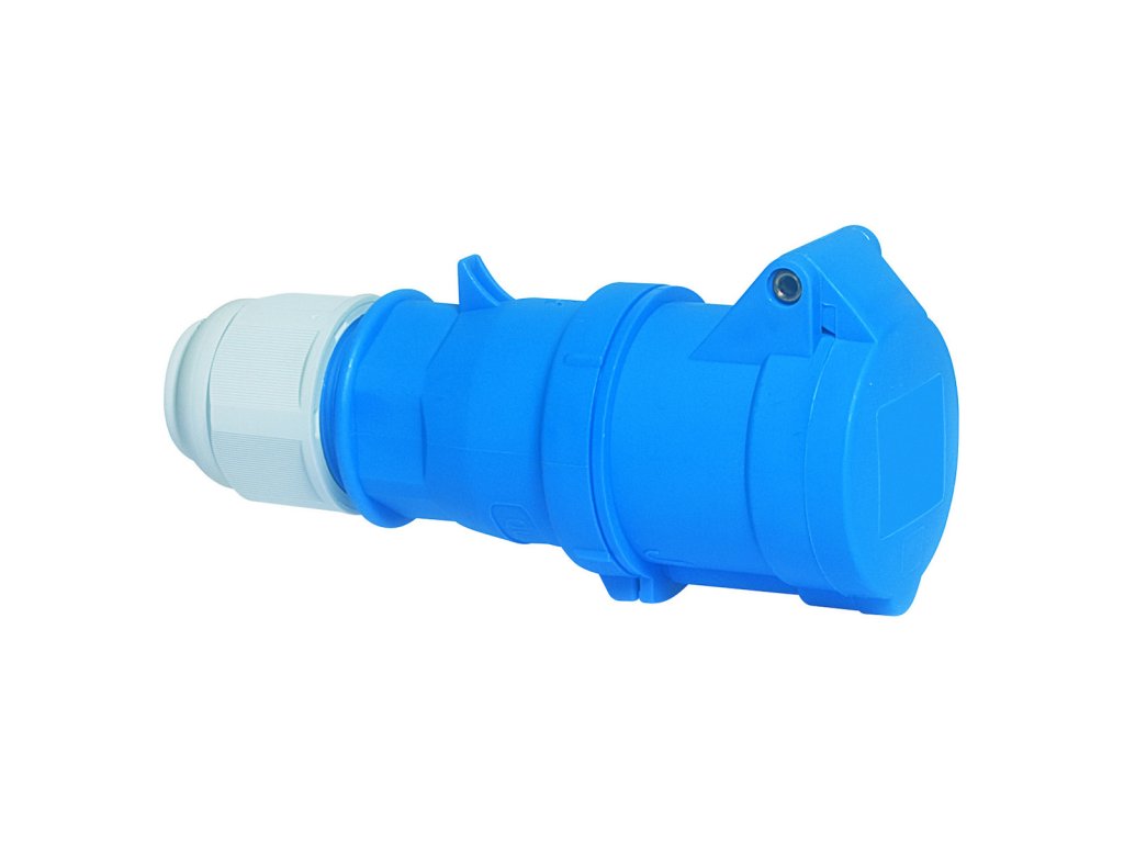 CEE spojka, Quick-Connect, Multi-Grip 16A 3p (2P+PE) 230V (200 do 250V~) 6h IP44 frekvence: 50 a 60Hz kód barvy: modrá RAL 5015 kontakty: nosič kontaktů je vyroben z polyamidu, kontakty jsou vyrobeny z mosazi maximální průřez vodiče: 2,5 mm2 materiál krytu: polyamid systém připojení: bezšroubové pružinové klecové svorky přívod kabelu: kabelová vývodka barva: límec modrý, víčko sklopné modré, kabelová vývodka šedá, pouzdro modré rozměry: výška 149 mm, šířka 53 mm, hloubka 69 mm další technické vlastnosti: pro průměr kabelu od 8 do max. 18 mm bezšroubové připojení vodičů QUICK-CONNECT je ověřený, trvanlivý, bezpečný a zcela bezúdržbový systém odolný proti nárazům, vibracím a výkyvům teplot. QUICK-CONNECT s optimálně nastaveným přítlakem svorky na připojovaný vodič zcela eliminuje nedostatky šroubových spojení (možnost přetažení, nebo nedotažení šroubků, slaněné vodiče není třeba ukončovat dutinkami) barevné označení vstupů, pro správné zapojení jednotlivých vodičů (dodržení sledu fází u třífázové elektrické soustavy) unikátní kabelová vývodka MULTI-GRIP s integrovaným těsněním a spolehlivým odlehčením tahu kabelu. Pevnost v tahu mnohonásobně překračuje hodnoty požadované normami IEC 60309, EN 60309 a VDE 0623. Vývodka MULTI-GRIP s ochranou proti samovolnému povolení vlivem vibrací, nebo teplotních rozdílů, vhodná i do náročných klimatických podmínek, odolná prachu a mastnotě. Vývodka dosahuje třídy ochrany min. IP67Doplňkové parametry