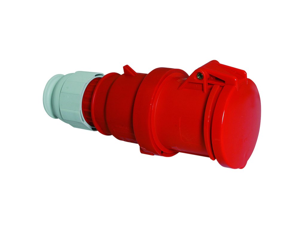 CEE spojka, Multi-Grip 63A 5p (3P+N+PE) 400V (200/346 do 240/415V~) 6h IP44 frekvence: 50 a 60Hz kód barvy: červená RAL 3000 kontakty: nosič kontaktů je vyroben z materiálu odolného vůči vysokým teplotám, kontakty jsou vyrobeny z mosazi, povrch kontaktů je poniklovaný maximální průřez vodiče: 16,0 mm2 materiál krytu: polyamid systém připojení: šroubová rámová svorka přívod kabelu: kabelová vývodka barva: pouzdro červené, límec červený, víčko sklopné červené, kabelová vývodka šedá rozměry: výška 252 mm, šířka 97 mm, hloubka 109 mm další technické vlastnosti: pro průměr kabelu od 16 do max. 36 mm unikátní kabelová vývodka MULTI-GRIP s integrovaným těsněním a spolehlivým odlehčením tahu kabelu. Pevnost v tahu mnohonásobně překračuje hodnoty požadované normami IEC 60309, EN 60309 a VDE 0623. Vývodka MULTI-GRIP s ochranou proti samovolnému povolení vlivem vibrací, nebo teplotních rozdílů, vhodná i do náročných klimatických podmínek, odolná prachu a mastnotě. Vývodka dosahuje třídy ochrany min. IP67Doplňkové parametry