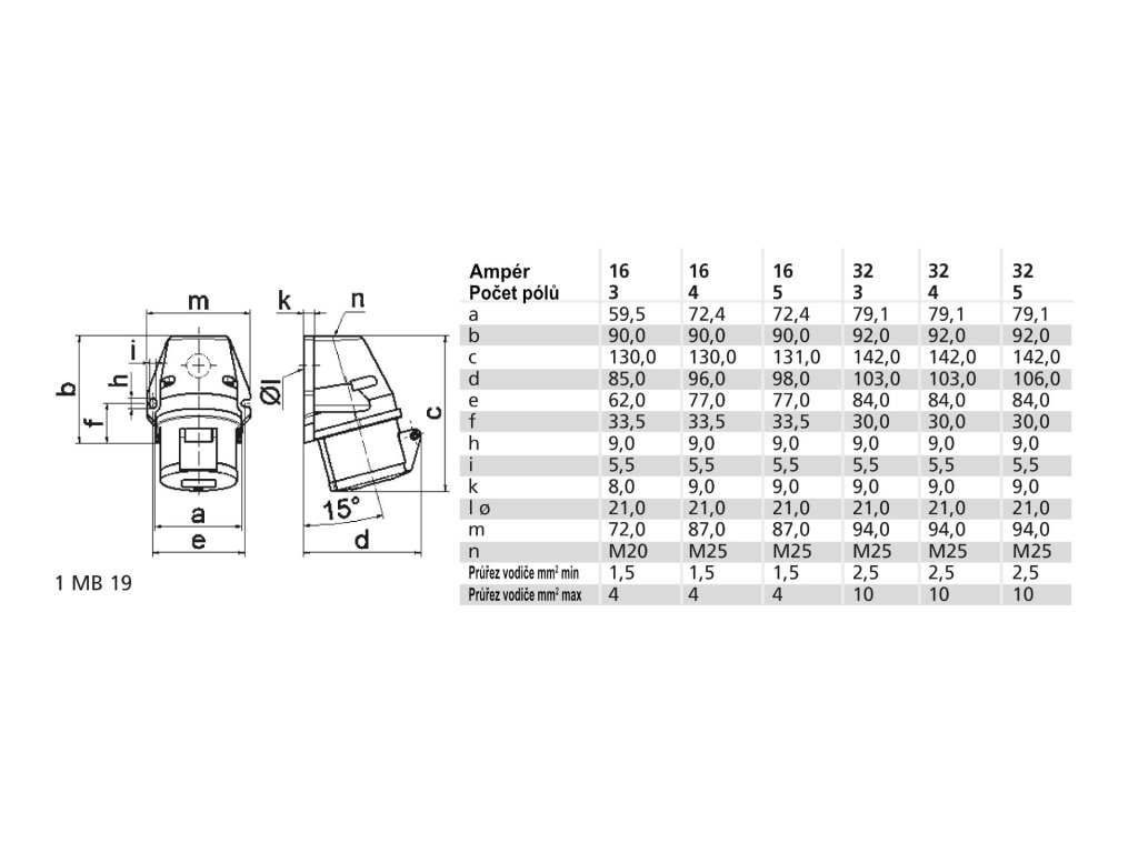 CEE zásuvka nástěnná, Quick-Connect 16A 4p (3P+PE) 400V (380 do 415V~) 6h IP44 frekvence: 50 a 60Hz kód barvy: červená RAL 3000 rozměr krytu: výška 90 mm, šířka 87 mm kontakty: nosič kontaktů je vyroben z polyamidu, kontakty jsou vyrobeny z mosazi maximální průřez vodiče: 4,0 mm2 materiál krytu: polyamid systém připojení: bezšroubové pružinové klecové svorky přívod kabelu: vrchní vstup M25 barva: horní část pouzdra červená, límec červený, víčko sklopné červené, spodní část pouzdra šedá rozměry: výška 130 mm, šířka 87 mm, hloubka 96 mm další technické vlastnosti: vstup pro kabel 1x nahoře otevřený, 1x dole uzavřený bezšroubové připojení vodičů QUICK-CONNECT je ověřený, trvanlivý, bezpečný a zcela bezúdržbový systém odolný proti nárazům, vibracím a výkyvům teplot. QUICK-CONNECT s optimálně nastaveným přítlakem svorky na připojovaný vodič zcela eliminuje nedostatky šroubových spojení (možnost přetažení, nebo nedotažení šroubků, slaněné vodiče není třeba ukončovat dutinkami) barevné označení vstupů, pro správné zapojení jednotlivých vodičů (dodržení sledu fází u třífázové elektrické soustavy)Doplňkové parametry
