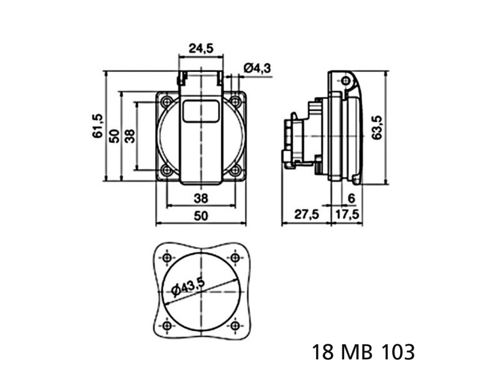 vestavná zásuvka, Quick-Connect, belgicko-francouzský systém (CZ) 16A 3p (2P+PE) 250V (250V) IP54 frekvence: střídavý proud (AC) kód barvy: RAL 7035 kontakty: nosič kontaktů je vyroben z polyamidu, kontakty jsou vyrobeny z mosazi, povrch kontaktů je poniklovaný maximální průřez vodiče: 4,0 mm2 materiál krytu: polyamid způsob připojení: bezšroubové typ: s ochranným kolíkem, belgicko-francouzský systém barva: víčko sklopné šedé, kryt šedý rozměry: výška 61.5 mm, šířka 50 mm, hloubka 45 mm rozměr příruby: svisle 50 mm, vodorovně 50 mm rozteč montážních otvorů: vodorovně 38 mm, svisle 38 mm Halogen free: ANO další technické vlastnosti: připojení zezadu, s ochranným kolíkem CZ (belgicko-francouzský systém) bezšroubové připojení vodičů QUICK-CONNECT je ověřený, trvanlivý, bezpečný a zcela bezúdržbový systém odolný proti nárazům, vibracím a výkyvům teplot. QUICK-CONNECT s optimálně nastaveným přítlakem svorky na připojovaný vodič zcela eliminuje nedostatky šroubových spojení (možnost přetažení, nebo nedotažení šroubků)Doplňkové parametry