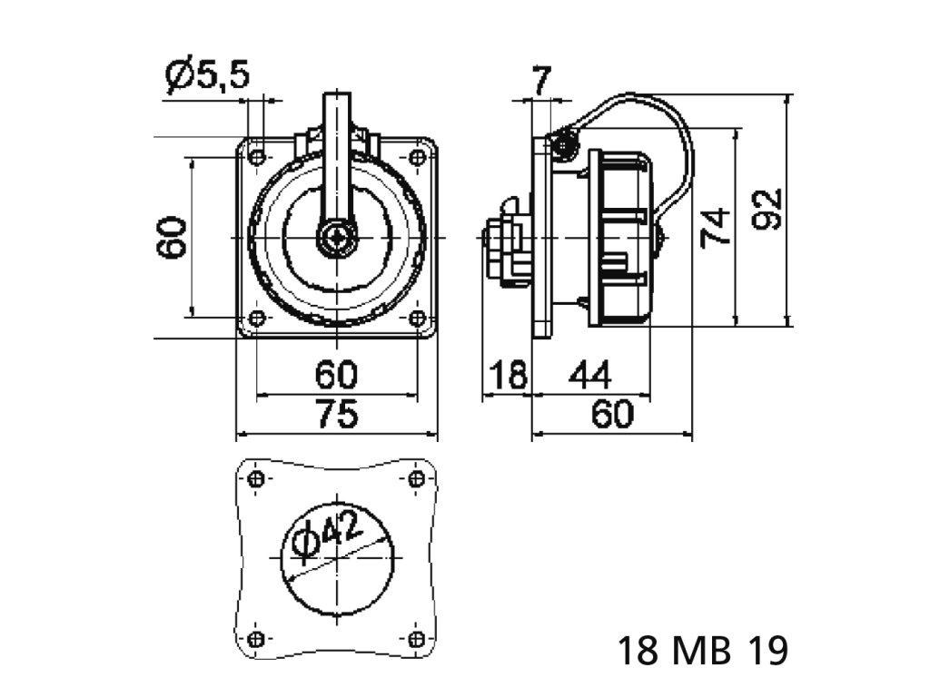 vestavná zásuvka, německý standard SCHUKO 16A 3p (2P+PE) 250V (250V) IP68 frekvence: střídavý proud (AC) kód barvy: modrá RAL 5015 kontakty: nosič kontaktů je vyroben z materiálu odolného vůči vysokým teplotám, kontakty jsou vyrobeny z mosazi, povrch kontaktů je poniklovaný maximální průřez vodiče: 4,0 mm2 materiál krytu: polyamid způsob připojení: šroubová svorka typ: s ochranným kolíkem, belgicko-francouzský systém barva: kryt modrý, víčko sklopné modré, bajonetový uzávěr šedý rozměry: výška 75 mm, šířka 75 mm, hloubka 78 mm rozměr příruby: svisle 75 mm, vodorovně 75 mm rozteč montážních otvorů: vodorovně 60 mm, svisle 60 mm Halogen free: ANO další technické vlastnosti: připojení zezadu, s ochranným kolíkem CZ (belgicko-francouzský systém), symbol kladiva, bajonetový kryt kontaktů (připevněn páskem)Doplňkové parametry