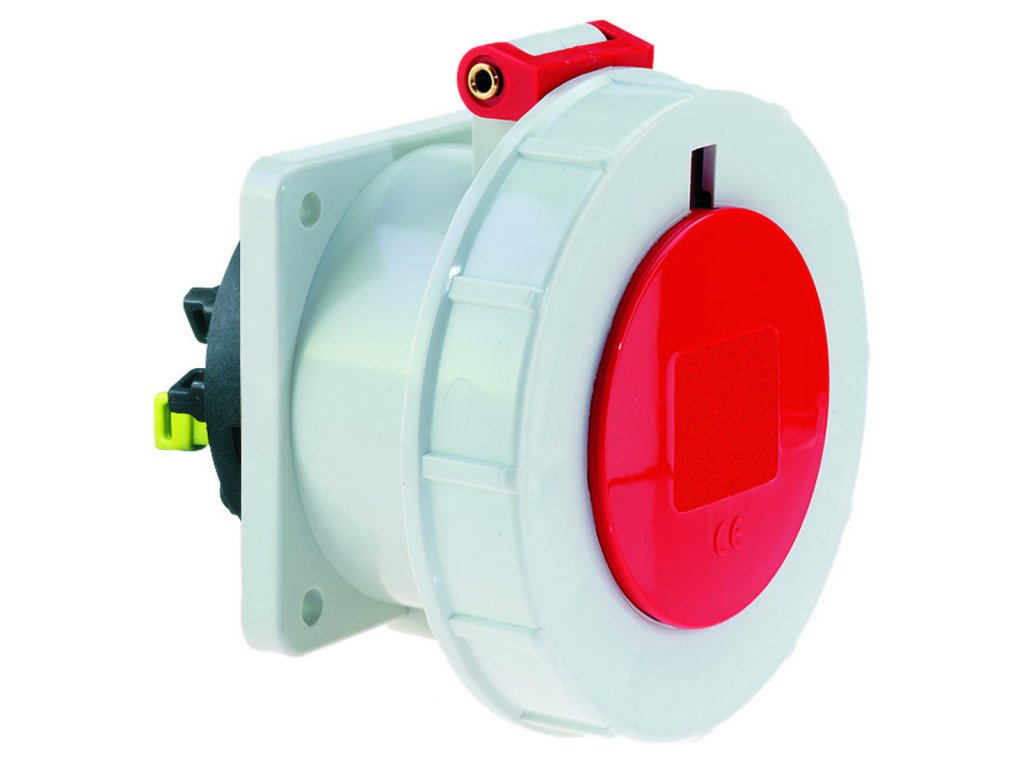 CEE zásuvka vestavná přímá, Quick-Connect 32A 5p (3P+N+PE) 400V (200/346 do 240/415V~) 6h IP67 frekvence: 50 a 60Hz kód barvy: červená RAL 3000 kontakty: nosič kontaktů je vyroben z polyamidu, kontakty jsou vyrobeny z mosazi maximální průřez vodiče: 10,0 mm2 materiál krytu: polyamid způsob připojení: bezšroubové pružinové klecové svorky barva: víčko sklopné červené, bajonetový uzávěr šedý, kryt šedý rozměry: výška 105 mm, šířka 101 mm, hloubka 110 mm rozměr příruby: svisle 75 mm, vodorovně 75 mm rozteč montážních otvorů: vodorovně 60 mm, svisle 60 mm další technické vlastnosti: bezšroubové připojení vodičů QUICK-CONNECT je ověřený, trvanlivý, bezpečný a zcela bezúdržbový systém odolný proti nárazům, vibracím a výkyvům teplot. QUICK-CONNECT s optimálně nastaveným přítlakem svorky na připojovaný vodič zcela eliminuje nedostatky šroubových spojení (možnost přetažení, nebo nedotažení šroubků, slaněné vodiče není třeba ukončovat dutinkami) barevné označení vstupů, pro správné zapojení jednotlivých vodičů (dodržení sledu fází u třífázové elektrické soustavy)Doplňkové parametry