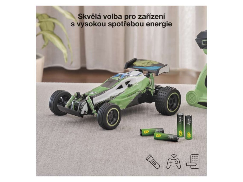 Kupte si nadstandardně výkonné tužkové baterie Ultra Plus GP G-TECH. Ty oproti běžným alkalickým bateriím dodají až o 200 % více energie. Jsou nejvyšší řadou baterií GP, a hodí se proto pro energeticky nejnáročnější zařízení a hodí se proto do přístrojů s velkým a nárazovým odběrem proudu jako jsou digitální fotoaparáty, fotografické blesky, MP3/MP4 či dálkově ovládané hračky. Tento výrobek se prodává v blistru obsahující 4 ks. Specifikace tužkových baterií AA Ultra plus G-TECH Klasické AA tužkové baterie Ultra Plus obsahují ochranu proti vytečení a jejich skladovatelnost dosahuje až 7 let. Pracovní teplota alkalických tužkových baterií GP je - 20 °C až + 60 °C. Napětí AA baterií typu LR6 činí 1,5 V a rozměry 14,5 mm x 50,5 mm. Představujeme vám nejnovější řadu alkalických baterií ULTRA+, která disponuje průlomovou technologií G-TECH. Tato revoluční technologie propůjčuje bateriím až o 200 % větší výkon než mají standardní alkalické baterie dostupné na trhu. Baterie z řady ULTRA+ vám zaručují dlouhotrvající a spolehlivé napájení pro vaše zařízení – ať už se jedná o dálkové ovladače, digitální fotoaparáty, hračky či jiné spotřebiče. S touto inovativní řadou baterií od společnosti GP budete vždy disponovat dostatečnou energií pro své nejnáročnější úkoly a aktivity. Bez ohledu na to, zda jste doma, v práci nebo na cestách, alkalické baterie ULTRA+ se stanou vaším spolehlivým partnerem pro dodání energie, kterou potřebujete. Nová technologie G-TECH Nová řada GP Alkalických baterií ULTRA+ nabízí až o 200 % lepší výkon a více nepřetržitého provozu, což je ideální pro déletrvající chvíle s rodinou a další aktivity, které vyžadují spolehlivý zdroj energie. Tyto vylepšené baterie jsou navrženy s ohledem na zlepšení výkonu a účinnosti a jsou tedy ideální pro použití v různých druzích spotřebičů s vysokou spotřebou energie. Čtyři silné průlomové změny byly provedeny zevnitř, včetně delší výdrže energie a silnější těsnosti. Technologie G-TECH se skládá z práškového zinku nové generace s vysokou hustotou, který zajišťuje rychlé a robustní generování energie a lepší výkon. Vícekroužkové jádro s vysoce čistým grafitem zvyšuje elektrickou vodivost a zajišťuje tak delší výdrž energie. Zefektivněná vnitřní konstrukce zvětšuje reakční plochu uvnitř baterie a přenos energie uvnitř článku. Patentovaná technologie prevence proti vytečení zabraňuje úniku energie z baterie a účinně ji uzamyká. Vybírejte z širokého sortimentu klasických tužkových AA baterií. Nabízíme i celou řadu dalších druhů baterií : mikrotužkové baterie AAA, knoflíkové baterie, velké monočlánky (takzvané velké buřty), malé monočlánky či ploché baterie. Zvažte i pořízení nabíjecích baterií. O firmě GP GP je firma soustředící se především na prodej komerčních baterií. Byla založena v roce 1964 v Hong Kongu a v současné době je jedním z největších prodejců baterií v Asii, Evropě i Severní Americe. Na našem e-shopu najdete kromě širokého výběru baterií GP také nabíječky.Doplňkové parametry