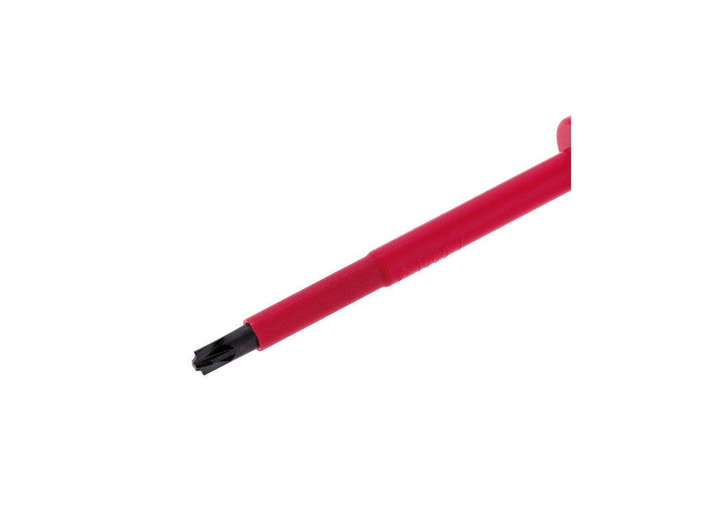 Izolované šroubováky VDE podle IEC 60900, klasifikace VDE 0682, část 201, jednotlivě zkoušené ve vodní lázni při zkušebním napětí 10 000 V. Speciální šroubovák s kombinovaným profilem, pro kombinované šrouby s drážkou a křížovou hlavou v elektrických systémech, např. ve svorkovnicích. Sada PH FL2x100 mm; délka: 195 mmDoplňkové parametry