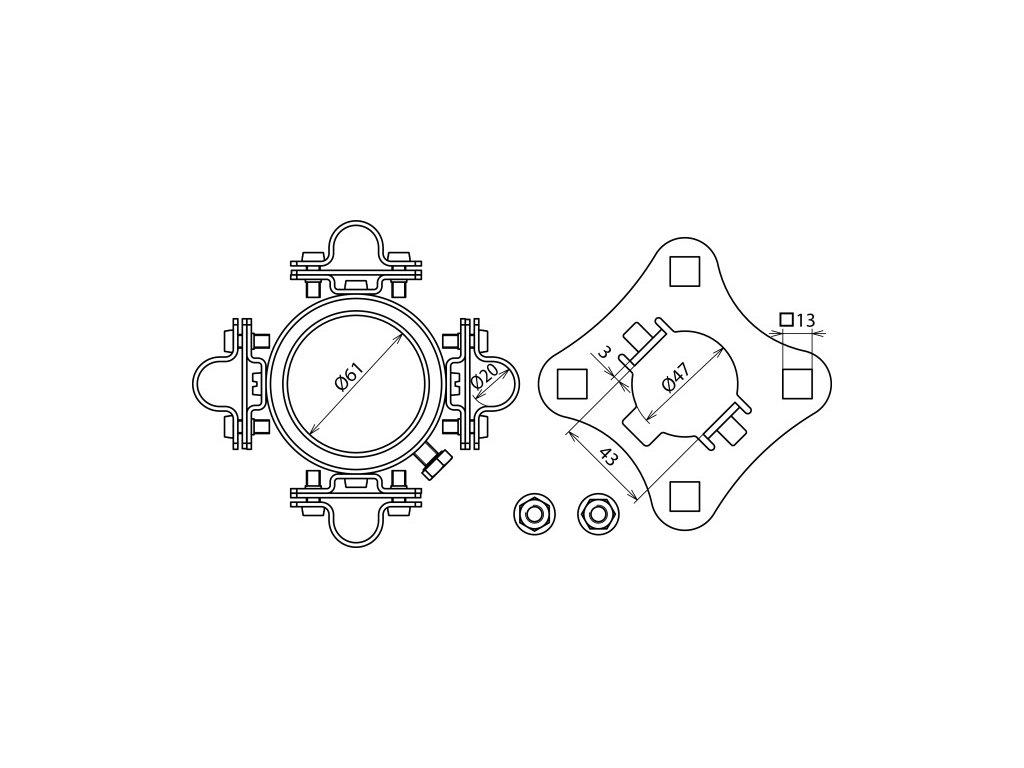 Upevňovací sada pro připojení vodičů HVI long k podpůrným trubkám pro vodiče HVI long, složená z připojovací destičky (čtyřnásobné s dvojicí pojistných matic) a upevňovacího kroužku se čtyřmi držáky vedení (D 20 mm), opatřenými prořezem pro zajištění oblasti koncovky (součástí sady jsou 2 stahovací pásky).Doplňkové parametry