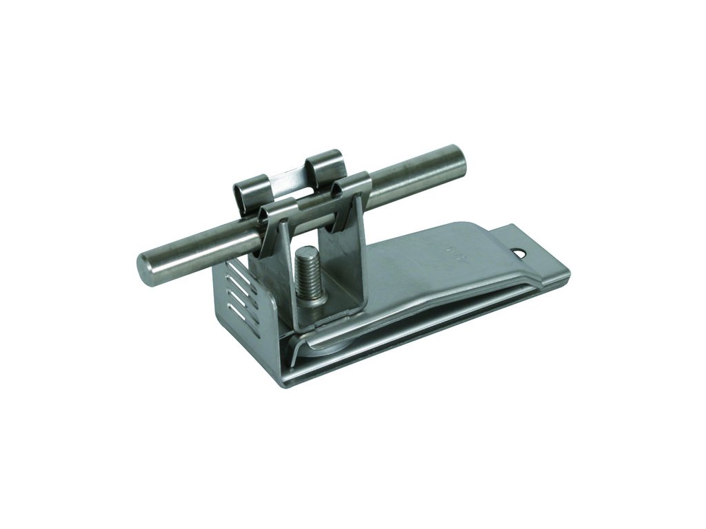 Střešní držák vedení DEHNgrip pro upevnění jímacího vedení a svodů v ploše střechy. Provedení s přítlačnou čelistí pro upevnění na střešní desky, s držákem DEHNgrip, volné uchycení vedení.Doplňkové parametry