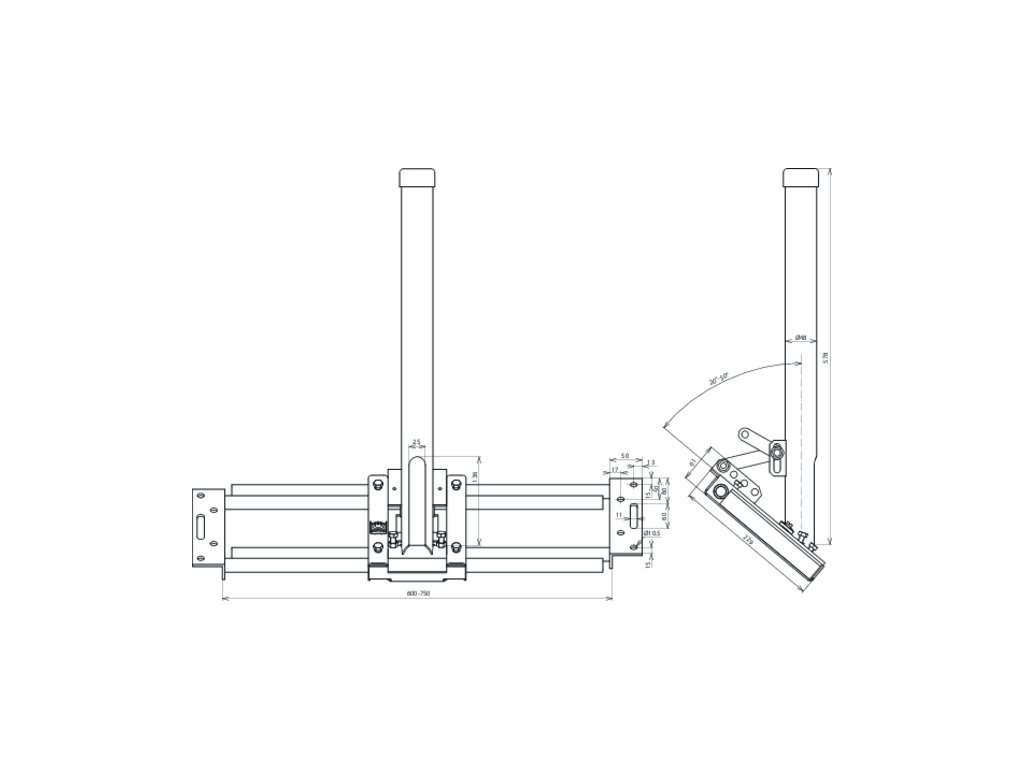 Držák mezi střešní krokve pro boční uchycení vodiče HVI light plus uloženého v podpůrné trubce (O 40 mm) nebo vodiče HVI uloženého v podpůrné trubce (O 50 mm), případně pro upevnění podpůrné trubky a uložení vodiče HVI nebo HVI light plus pod střechou. Provedení pro montáž do krokví při sklonu střechy 24–53°, univerzální nastavení.Doplňkové parametry