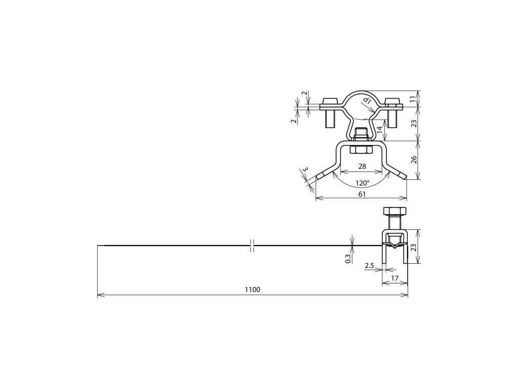 Držák vedení s upínacím páskem, pro upevnění vodiče HVI (černý) nebo vodiče HVI light např. na trubky. Provedení s kovovým držákem vedení.Doplňkové parametry