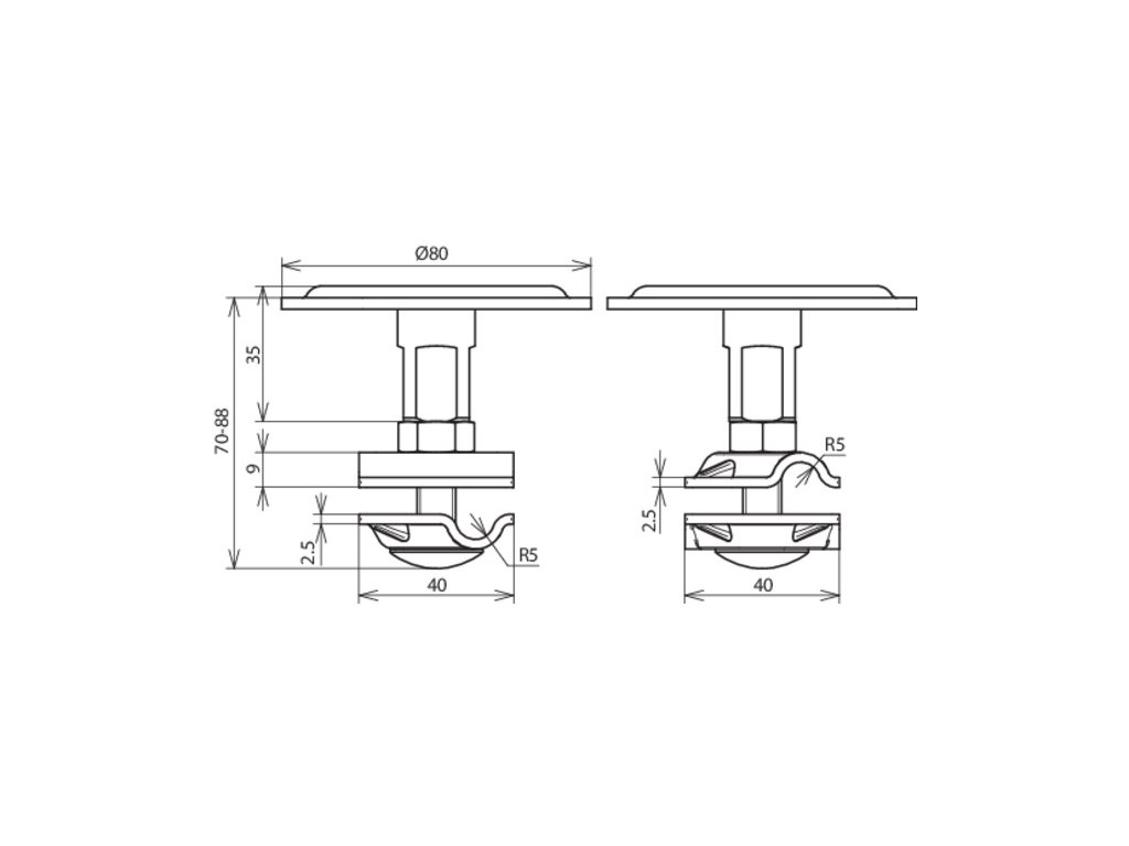 Uchycení a ochrana jímacího vedení uloženého v pochozích a pojízdných střechách. Jímací hřib a vedení mohou být uloženy v betonu nebo ve spárách mezi betonovými deskami.Doplňkové parametry