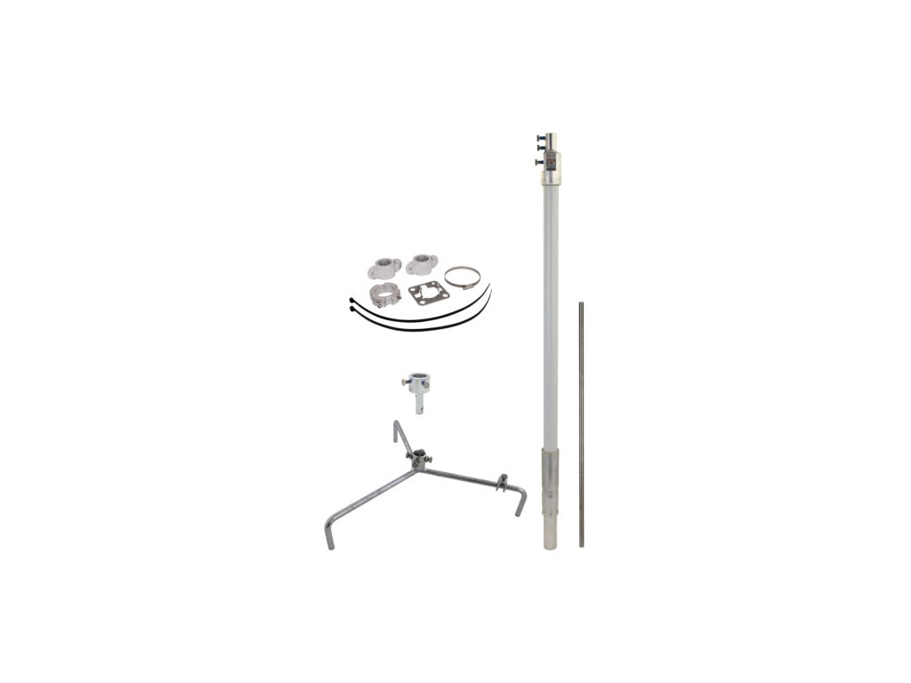 Jímací stožár pro vodič HVI light plus, pro umístění na ploché střechy, s přizpůsobením ke sklonu střechy do max. 10°. Komplet se čtyřnásobnou připojovací destičkou pro vodič HVI light plus, upevňovací sadou pro montáž vodiče a stojanu. Celková výška podpůrné trubky GFK/Al s jímačem je 2200 mm.Doplňkové parametry
