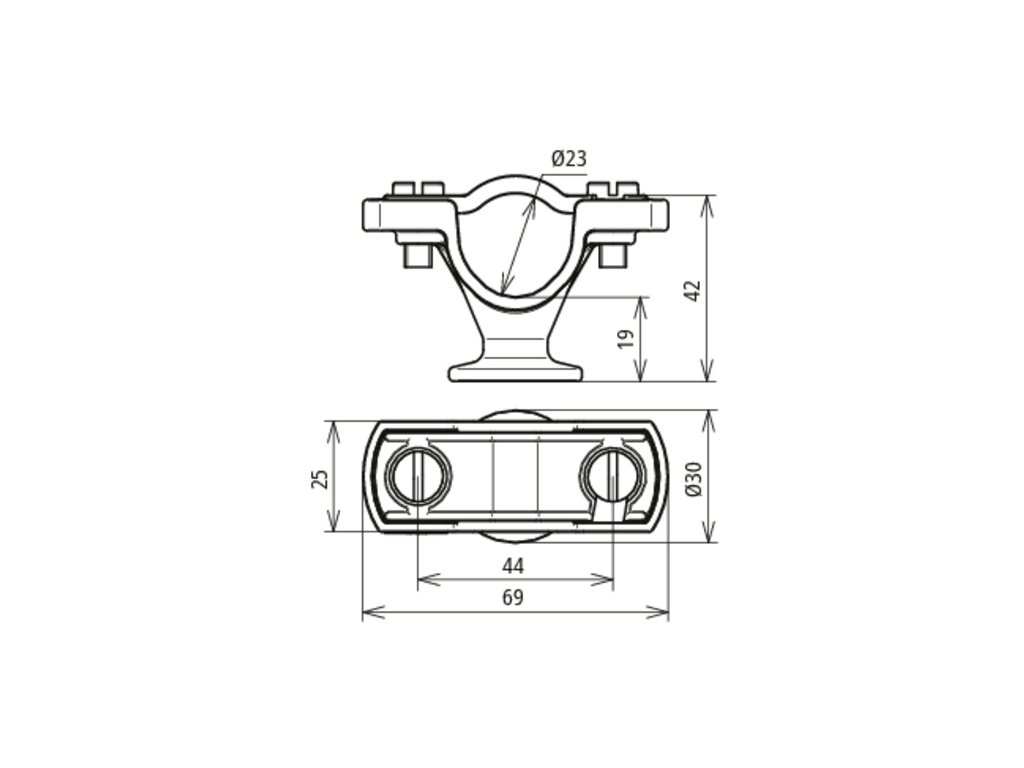 Držák vedení pro vodič HVI (šedý), s příložkou se dvěma šrouby. Umělohmotné provedení, pro montáž na stěnu.Doplňkové parametry