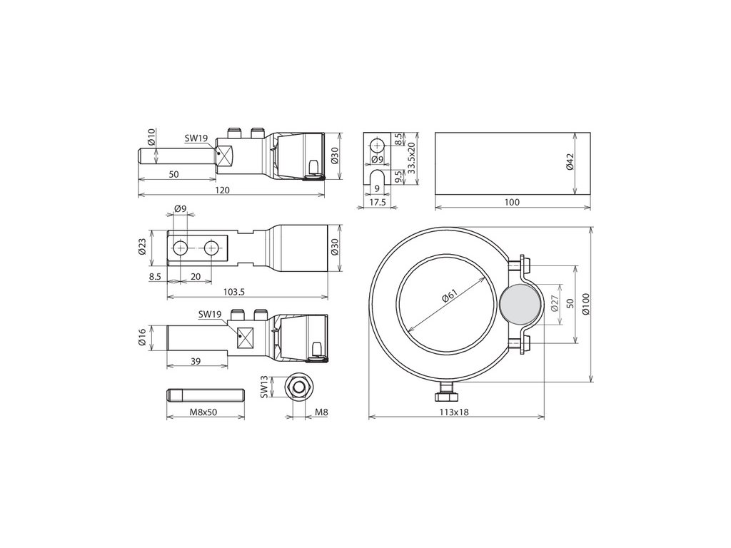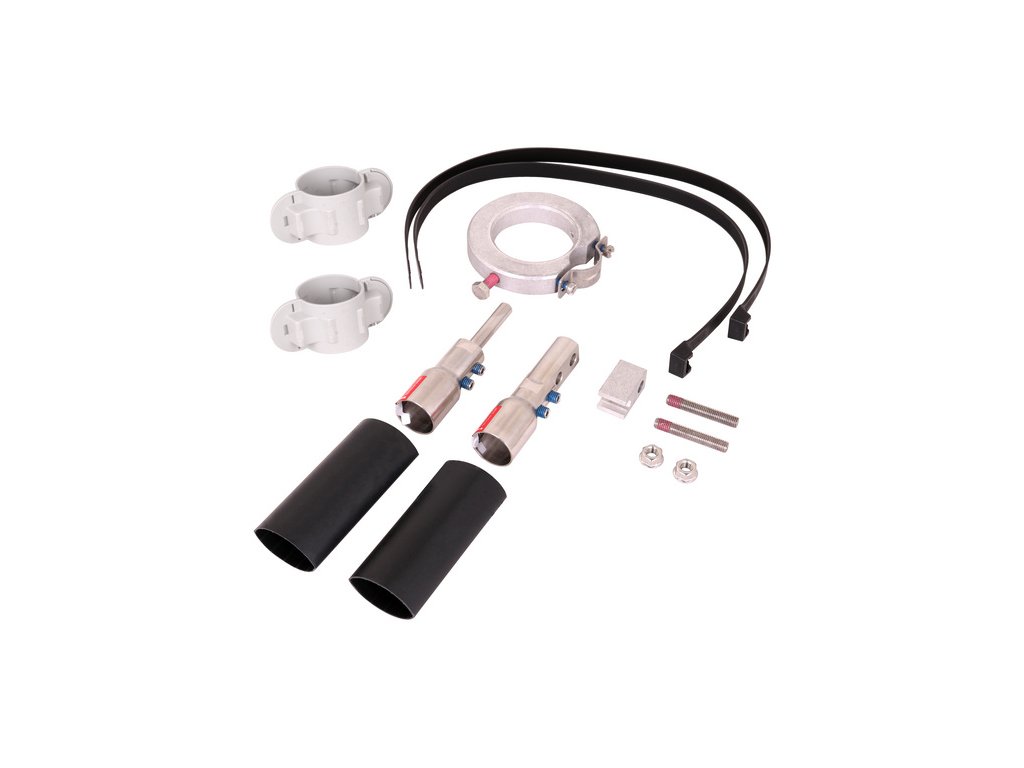 Připojovací sada vodiče HVI power na podpůrnou trubku GFK/Al pro vodiče HVI power je složena z připojovacích prvků, závitových čepů, připojovacího dílu, teplem smrštitelné bužírky, stahovacích pásků a upevňovacího kroužku s držákem vedení s prořezem (O 27 mm).Doplňkové parametry