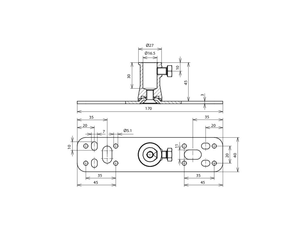 Upevňovací destička (montážní deska) k upevnění distančních držáků (GFK) nebo distančních tyčí (D 16 mm) na stěny a konstrukce.Doplňkové parametry