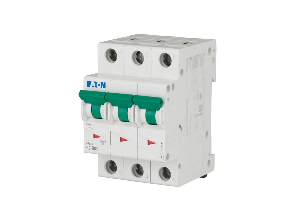 Jističe vedení PL7, 3-pólové, Tripping Characteristic: B, Rated current In: 6 A, Rated switching capacity (IEC/EN 60947-2): 10 kA, Spínací přístroje pro bytovou výstavbu a účelové stavbyDoplňkové parametry