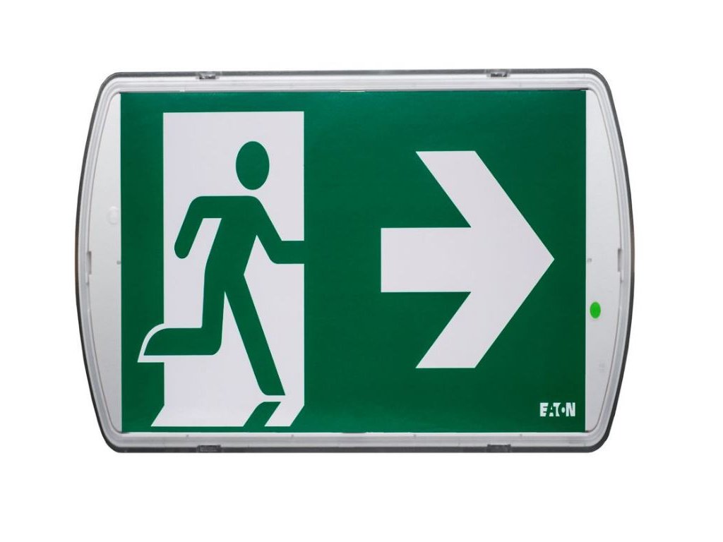 Eaton SafeLite, Safety lighting/ exit sign, 30m viewing distance, Escape route and open area, Stand alone, LED, Maintained / Non-Maintained operation, 60lm in mains, IP65, 150lm, 1 hour duration, 3 ISO pictograms (D,L,R)Doplňkové parametry