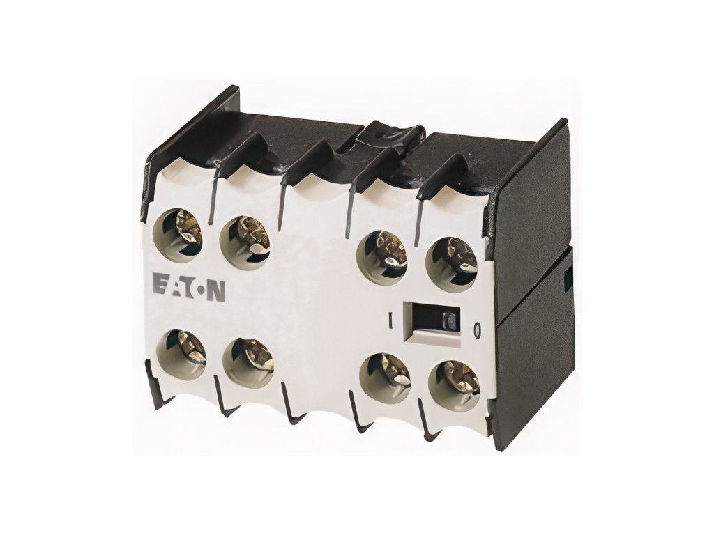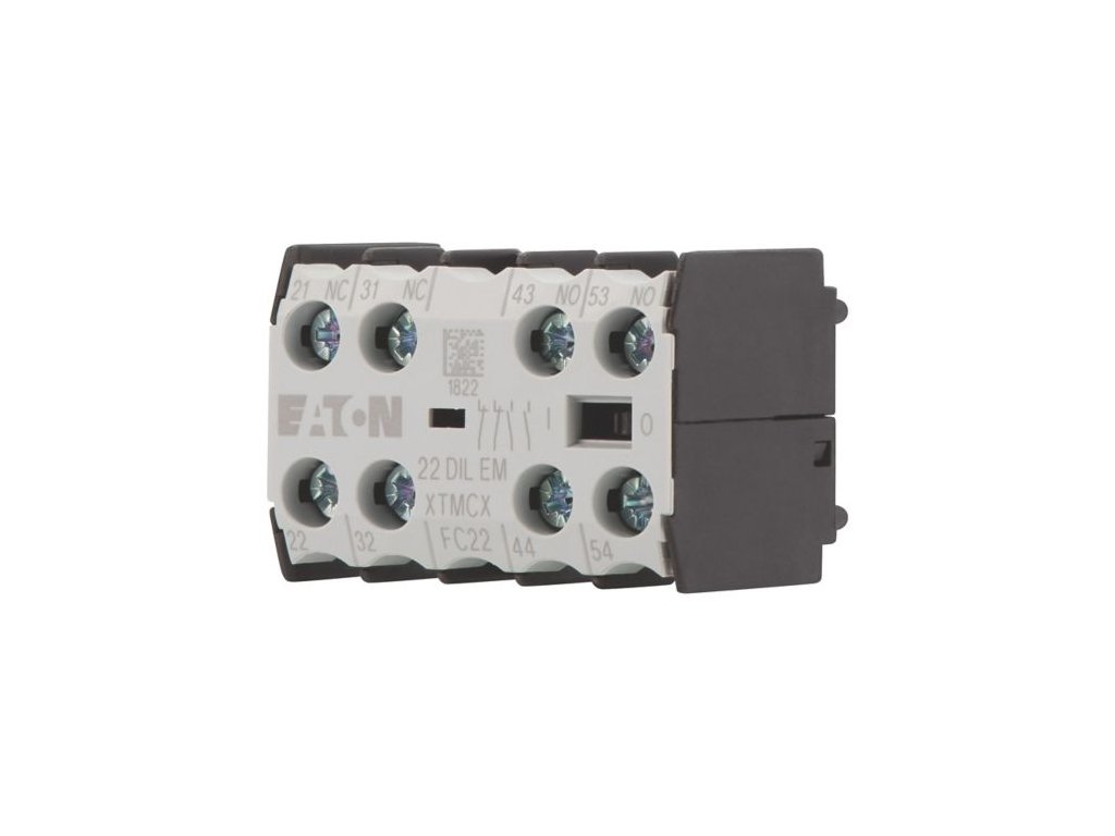 Blok pomocných kontaktů, S nuceně vedenými kontakty, Spínací prvky podle normy EN 50012, Upřednostňovány jsou spínací prvky podle normy EN 50012., Kombinace s verzemi E odpovídají normě EN 50011 a jsou upřednostňovány., Funkce: pro standardní aplikace, 4-pólové, Typy svorek: Šroubové svorky, Jmenovitý pracovní proud AC-15 220 V 230 V 240 V: Ie= 4 A, Jmenovitý pracovní proud AC-15 380 V 400 V 415 V: Ie= 2 A, Kontakty S = spínací kontakt: 2 spínací kontakt, Kontakty Ö = rozpínací kontakt: 2 rozpínací kontakt, Druh montáže: Montáž do panelu, Použitelný pro: DILEM-10(-G)(…), DILEM-4(-G)(…), DILEEM-10(-G)(…), DILEM12-10(-G)(…), Poznámky: Kontakty s nuceným vedením podle ČSN/EN 60947-5-1 Příloha L, uvnitř bloku pomocných kontaktů a integrovaných pomocných kontaktů DILER, DILE(E)M., Pomocné rozpínací kontakty lze použít jako zrcadlový kontakt podle ČSN EN 60947-4-1 Příloha F (nikoli zpožděný rozpínací kontakt)Doplňkové parametry