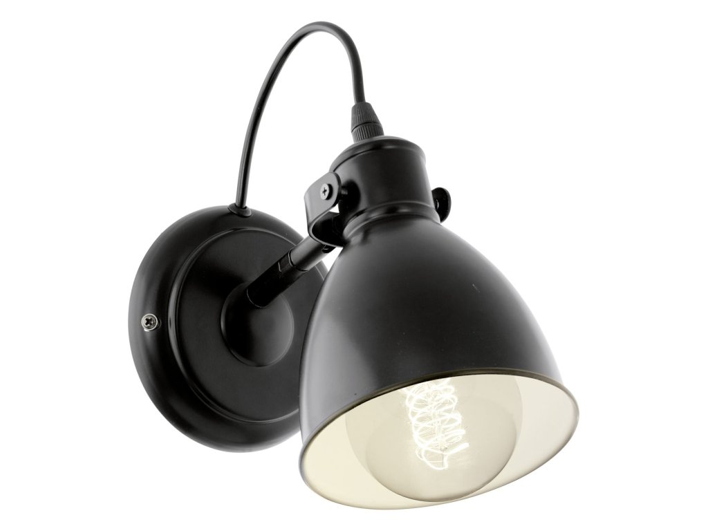 Die Wandleuchte PRIDDY ist aus schwarzem Metall mit einem beweglichen Spot mit weißer Innenseite gefertigt. Der Wandspot im dezenten Industrial-Stil fügt sich nahtlos in die moderne Einrichtungstrends ein und bietet Ihnen, dank des schwenkbaren Leuchtenkopfes, die Möglichkeit einzelne Lichtakzente im Raum zu setzen – egal ob in der Küche, im Wohnzimmer, Schlafzimmer, Flur oder Esszimmer. Das abgebildete Filament-Leuchtmittel ist nicht im Lieferumfang enthalten. Geeignet ist die Leuchte für jedes Leuchtmittel mit E27-Sockel. Die Leuchten der PRIDDY-Serie begeistern durch ihre Einfachheit, und sorgen trotzdem für Pepp in Ihrem Zuhause.Doplňkové parametry