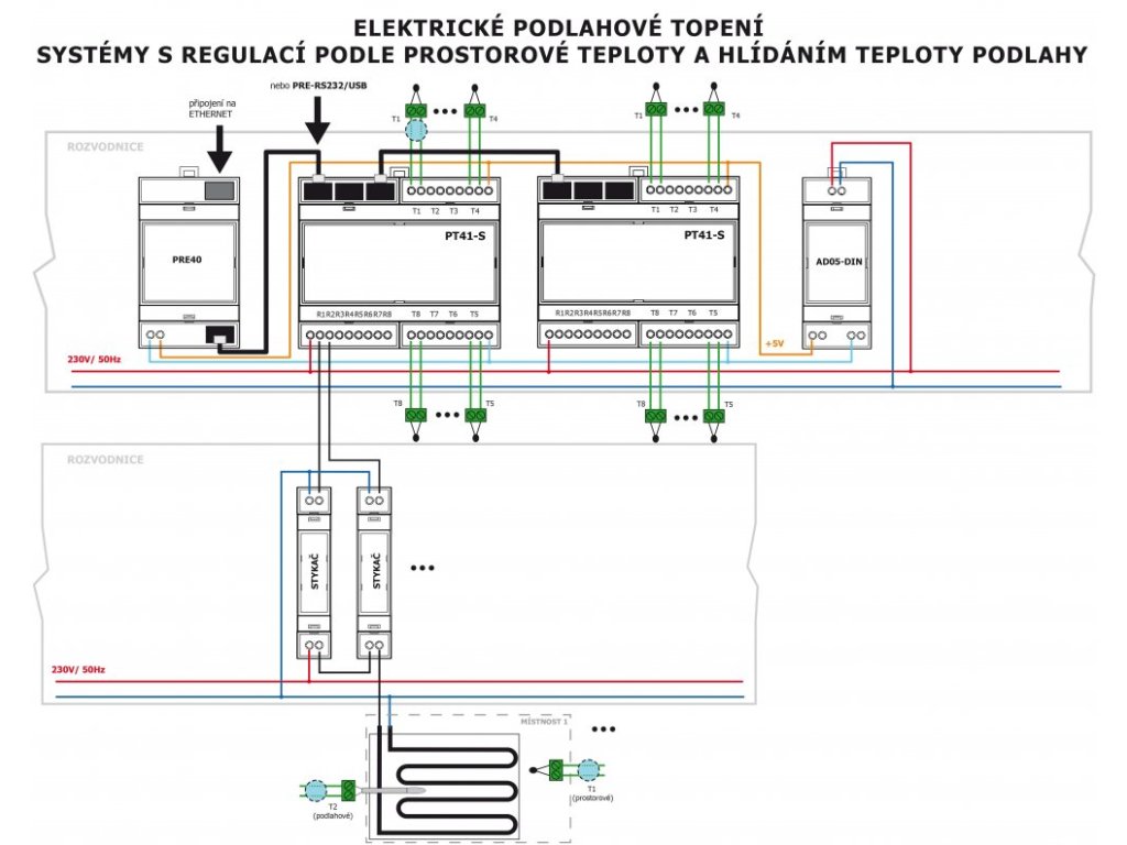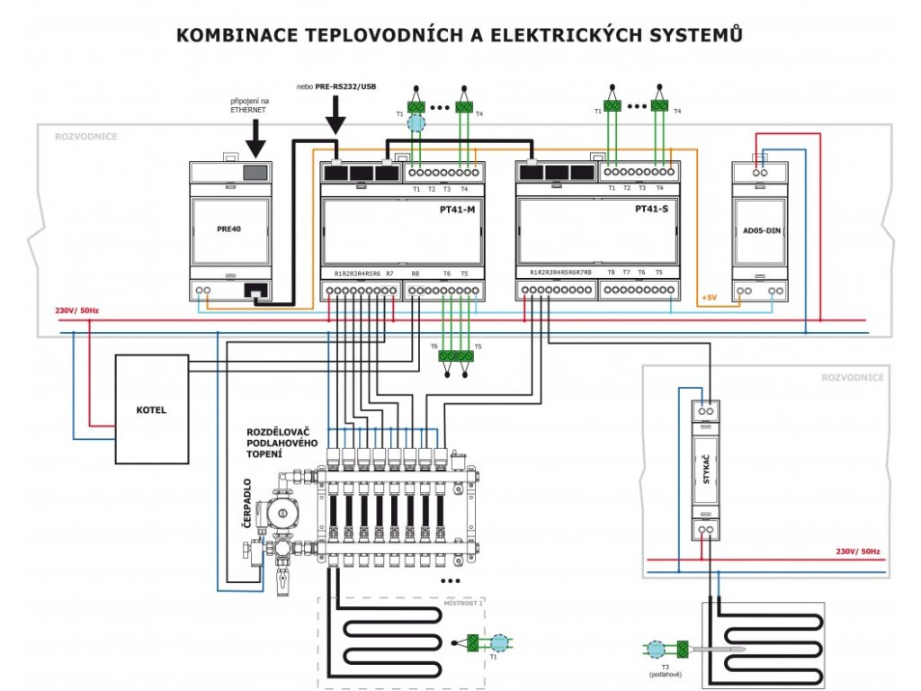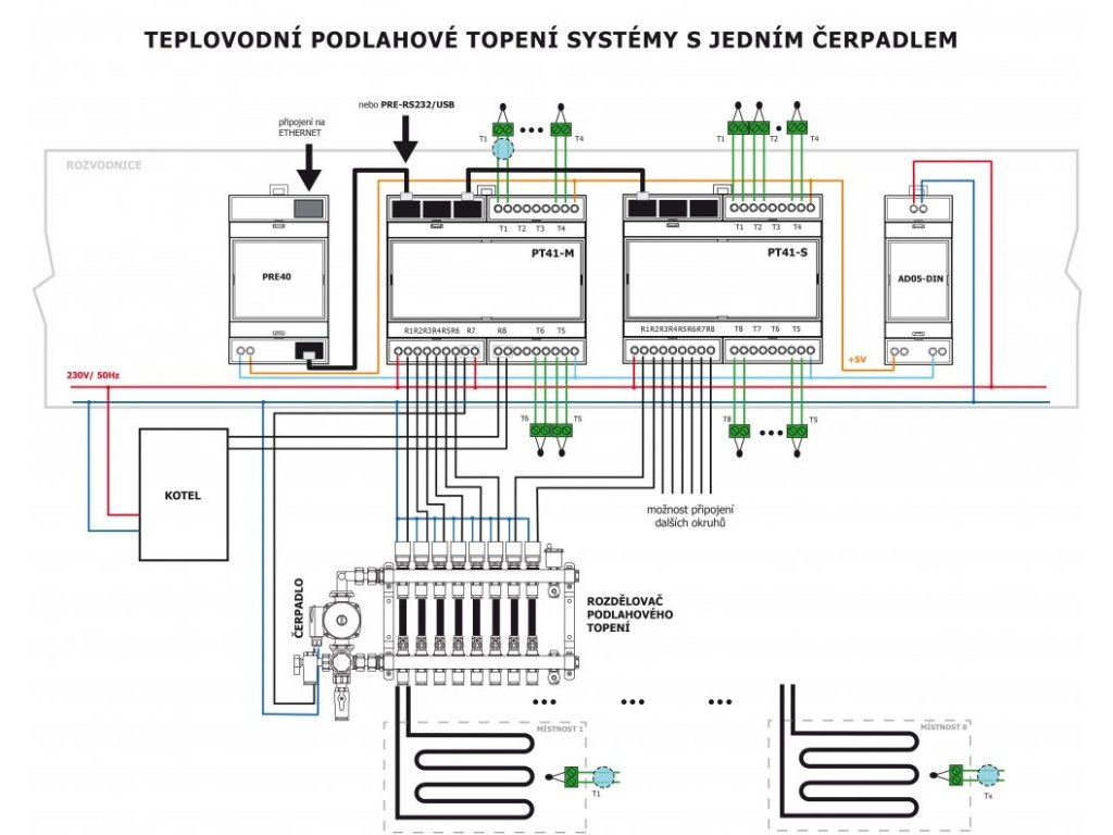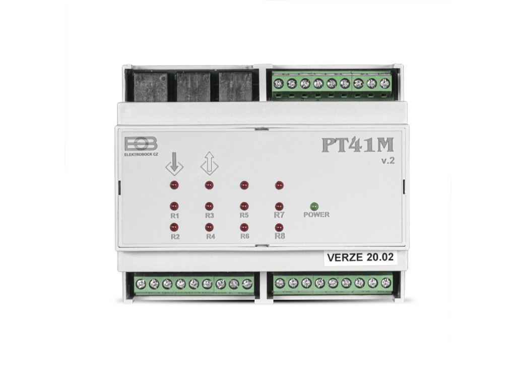 <h2> Vlastnosti PT41-M:</h2> <h4> </h4> <h4> <span style="color:#ff0000;">NOVÁ VERZE (v.2) OD 1.03.2021 (firmware 20.01+)!</span></h4> <ul> <li> možnost ovládat systém přes server, není nutná pevná veřejná adresa (je nutné mít PRE40 v.2!)</li> <li> vylepšená aplikace EOB-PT41 s indikací priorit, sumy provozních hodin</li> <li> možnost resetu všech jednotek připojením přes USB</li> </ul> <p> <span style="color:#ff0000;"><strong>Pro ovládání PT41-M v.2 je nutná aplikace EOB-PT41:</strong></span></p> <h4> <a href="http://www.microsoft.com/cs-cz/p/eob-pt41/9pgdvzm2kz35?activetab=pivot:overviewtab" target="_blank"><strong>NOVÁ aplikace EOB-PT41</strong></a><a href="http://www.microsoft.com/cs-cz/p/eob-pt41/9pgdvzm2kz35?activetab=pivot:overviewtab" target="_blank"> pro win10 ZDARMA ke stažení na Windows store</a> <span style=""><a class="lightbox" href="/data/images/thumb/2758_ffce56079c.png?1509519995" rel="prettyPhoto[pp_gal]"><img alt="win10" data-lightbox="1" src="/data/images/thumb/2758_01458cbfb6.png?1509519995" style="width: 30px; height: 30px;" /></a></span></h4> <h4> <a href="https://play.google.com/store/apps/details?id=cz.elbock.EOB_PT41" target="_blank"><strong>NOVÁ aplikace EOB-PT41</strong> pro android ZDARMA ke stažení na </a><span style=""><a class="lightbox" href="/data/images/thumb/2315_ffce56079c.png?1435733179" rel="prettyPhoto[pp_gal]"><img alt="android" data-lightbox="1" src="/data/images/thumb/2315_01458cbfb6.png?1435733179" style="width: 30px; height: 30px;" /></a></span></h4> <h4> <a href="https://apps.apple.com/cz/app/eob-pt41/id1549864572?l=cs" target="_blank"><strong>NOVÁ aplikace EOB-PT41</strong> pro iOS ZDARMA ke stažení na App store </a><span style=""><a class="lightbox" href="/data/images/thumb/2316_ffce56079c.png?1435733179" rel="prettyPhoto[pp_gal]"><img alt="iOS" data-lightbox="1" src="/data/images/thumb/2316_acf86e8abe.png?1435733179" style="width: 20px; height: 23px;" /></a></span></h4> <h4> <a data-link-anchor="" data-link-id="4009" data-link-type="text" href="undefined"><span style="color:#0000cd;">Privacy Policy</span></a></h4> <hr /> <h4> PT41-M (verze firmware 12.02+):</h4> <ul> <li> možnost ovládání systému přes internet,</li> <li> volba připojení teplotních čidel nebo pokojových termostatů,</li> <li> určení priority pro každou zónu,</li> <li> možnost korekce měřené teploty,</li> <li> volba spínání oběhového čerpadla pouze podle aktuální jednotky,</li> <li> lze použít nejen pro teplovodní podlahové topení</li> <li> volba směru synchronizace (z aplikace do jednotky nebo z jednotky do PC)</li> <li> přidána možnost aktivace útlumové teploty (lze nastavit) - po aktivaci bude daná zóna temperovat na tuto hodnotu do zrušení režimu útlum.</li> <li> přidáno servisní heslo pro znemožnění neoprávněného přenastavení jednotky</li> </ul> <h4> <strong>Pro ovládání starších jednotek PT41-M (firmware 12.02+) slouží aplikace PT41:</strong></h4> <p> </p> <h4> <a href="http://www.microsoft.com/cs-cz/store/p/pt41/9nq77pmq2ht7" target="_blank">Aplikace PT41 pro win10 ZDARMA ke stažení na Windows store </a><a href="https://www.microsoft.com/cs-cz/store/p/pt41/9nq77pmq2ht7" target="_blank"><a href="https://www.microsoft.com/cs-cz/store/p/pt41/9nq77pmq2ht7" target="_blank"><img alt="win10" data-lightbox="0" src="/data/images/thumb/2758_c30a99ae23.png?1509519995" style="width: 48px; height: 48px;" /></a></a></h4> <h4> <a href="http://play.google.com/store/apps/details?id=cz.trinerdis.pt41&hl=cs" target="_blank">Aplikace PT41 pro android ZDARMA ke stažení na</a> <a href="https://play.google.com/store/apps/details?id=cz.trinerdis.pt41&hl=cs" target="_blank"><a href="https://play.google.com/store/apps/details?id=cz.trinerdis.pt41&hl=cs" target="_blank"><img alt="android" data-lightbox="0" src="/data/images/thumb/2315_01458cbfb6.png?1435733179" style="width: 30px; height: 30px;" /></a></a></h4> <h4> <a href="http://itunes.apple.com/WebObjects/MZStore.woa/wa/viewSoftware?id=1142243747&mt=8" target="_blank">Aplikace PT41 pro iOS ZDARMA ke stažení na App store</a> <a href="https://itunes.apple.com/WebObjects/MZStore.woa/wa/viewSoftware?id=1142243747&mt=8" target="_blank"><a href="https://itunes.apple.com/WebObjects/MZStore.woa/wa/viewSoftware?id=1142243747&mt=8" target="_blank"><img alt="iOS" data-lightbox="0" src="/data/images/thumb/2316_fffcf6b8bd.png?1435733179" style="width: 32px; height: 37px;" /></a></a></h4> <hr /> <p> Jednotku PT41-M je možné naprogramovat i přes PC (pomocí převodníku PRE-RS232/USB).</p> <p> Při sepnutí jednoho z topných okruhů (R1-R6), dojde do 1min. k sepnutí výstupu R7, na které může být napojeno např. čerpadlo. Do 5s od zapnutí R7 se také sepne výstup R8, který je určen pro spínání kotle. K vypnutí dochází naopak, nejdříve vypne kotel (R8) a do 5s čerpadlo (R7).</p> <h3> Funkce PT41-M:</h3> <ul> <li> reguluje až 6 zón podle nastaveného programu,</li> <li> 2 výstupy (R7a R8) slouží pro spínání čerpadla a kotle,</li> <li> každá změna stavu je indikována LED na čelním panelu,</li> <li> po nastavení pracuje zcela autonomně,</li> <li> možnost rozšíření o další zóny pomocí jednotek PT41-S.</li> </ul> <p> <strong><span style="background-color: yellow">K PT41-M JE NUTNÉ DOKOUPIT:</span></strong></p> <ul> <li> <a href="https://www.elektrobock.cz/napajeci-zdroj-pro-pt41-m-s/p212"><strong><span style="background-color: yellow">NAPÁJECÍ ZDROJ </span></strong></a><strong><span style="background-color: yellow">AD05-DIN</span></strong></li> <li> <strong><span style="background-color: yellow">USB PŘEVODNÍK <a href="https://www.elektrobock.cz/prevodnik-usb-rs232-rj11/p278">PRE-RS232/USB</a> </span></strong></li> <li> <strong><span style="background-color: yellow">ETHERNET/WiFi P</span></strong><strong><span style="background-color: yellow">ŘEVODNÍK <a href="https://www.elektrobock.cz/prevodnik-rs232-ethe