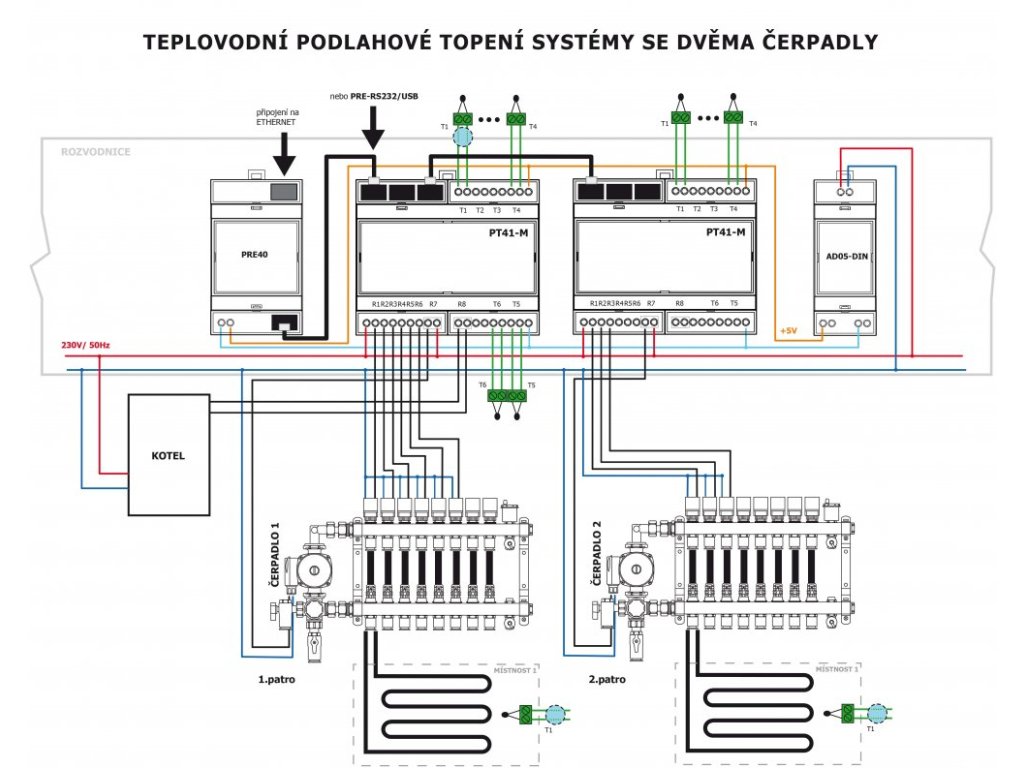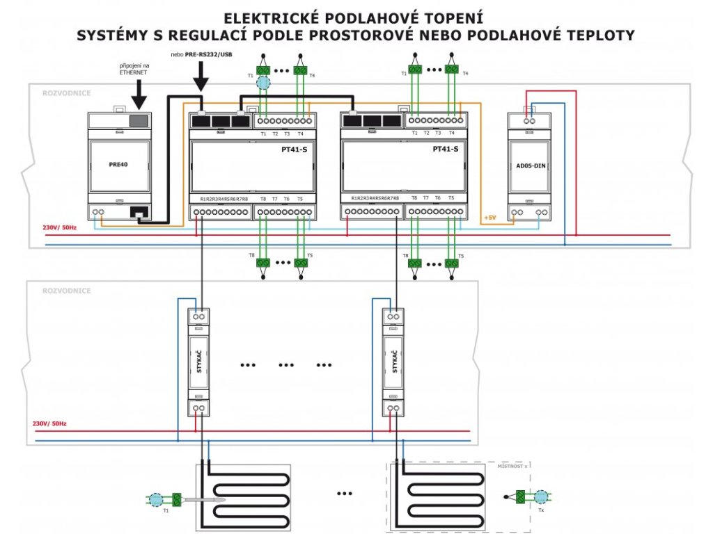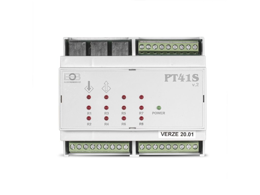 <h2> Vlastnosti PT41-S:</h2> <h4> </h4> <h4> <span style="color:#ff0000;">NOVÁ VERZE (v.2) OD 1.03.2021 (firmware 20.01+)!</span></h4> <ul> <li> možnost ovládat systém přes server, není nutná pevná veřejná adresa (je nutné mít PRE40 v.2!)</li> <li> vylepšená aplikace EOB-PT41 s indikací priorit, sumy provozních hodin</li> <li> možnost resetu všech jednotek připojením přes USB</li> </ul> <p> <span style="color:#ff0000;"><strong>Pro ovládání PT41-M v.2 je nutná aplikace EOB-PT41:</strong></span></p> <h4> <a href="https://www.microsoft.com/cs-cz/p/eob-pt41/9pgdvzm2kz35?activetab=pivot:overviewtab" target="_blank"><strong>NOVÁ aplikace EOB-PT41</strong> pro win10 ZDARMA ke stažení na Windows store</a></h4> <h4> <a href="https://play.google.com/store/apps/details?id=cz.elbock.EOB_PT41" target="_blank"><strong>NOVÁ aplikace EOB-PT41</strong> pro android ZDARMA ke stažení na </a></h4> <h4> <a href="https://apps.apple.com/cz/app/eob-pt41/id1549864572?l=cs" target="_blank"><strong>NOVÁ aplikace EOB-PT41</strong> pro iOS ZDARMA ke stažení na App store </a></h4> <h4> <a data-link-anchor="" data-link-id="4009" data-link-type="text" href="undefined"><span style="color:#0000cd;">Privacy Policy</span></a></h4> <hr /> <h4> PT41-S (verze firmware 12.02+):</h4> <h4> </h4> <p> Nabízí následující zlepšení:</p> <ul> <li> přidána položka útlum (v konstantách zadat hodnotu teploty útlumu, po zaškrtnutí bude daná zóna temperovat na tuto hodnotu do zrušení režimu útlum).</li> <li> přidáno servisní heslo (slouží pro komunikaci s mobilní aplikací, pokud nebude v aplikaci zadané tak se nezobrazí konstanty, které<br /> ovlivňují nastavení celého systému)</li> <li> nové mobilní aplikace pro vzdálenou správu- <strong>POZOR NELZE OVLÁDAT STARŠÍ VERZE JEDNOTEK! Doporučujeme poslat na upgrade firmwaru!</strong></li> <li> ovládání systému přes internet</li> <li> připojení teplotních čidel nebo pokojových termostatů</li> <li> určení priority sepnutí dané zóny</li> <li> korekce teploty</li> <li> systém lze použít nejen pro teplovodní podlahové topení</li> <li> možnost synchronizace z PC nebo opačně z jednotky do PC</li> </ul> <h4> <strong>Pro ovládání starších jednotek PT41-S (firmware 12.02+) slouží aplikace PT41:</strong></h4> <p> </p> <h4> <a href="http://www.microsoft.com/cs-cz/store/p/pt41/9nq77pmq2ht7" target="_blank">Aplikace PT41 pro win10 ZDARMA ke stažení na Windows store </a><a href="https://www.microsoft.com/cs-cz/store/p/pt41/9nq77pmq2ht7" target="_blank"><a href="https://www.microsoft.com/cs-cz/store/p/pt41/9nq77pmq2ht7" target="_blank"><img alt="win10" data-lightbox="0" src="/data/images/thumb/2758_c30a99ae23.png?1509519995" style="width: 48px; height: 48px;" /></a></a></h4> <h4> <a href="http://play.google.com/store/apps/details?id=cz.trinerdis.pt41&hl=cs" target="_blank">Aplikace PT41 pro android ZDARMA ke stažení na</a> <a href="https://play.google.com/store/apps/details?id=cz.trinerdis.pt41&hl=cs" target="_blank"><a href="https://play.google.com/store/apps/details?id=cz.trinerdis.pt41&hl=cs" target="_blank"><img alt="android" data-lightbox="0" src="/data/images/thumb/2315_01458cbfb6.png?1435733179" style="width: 30px; height: 30px;" /></a></a></h4> <h4> <a href="http://itunes.apple.com/WebObjects/MZStore.woa/wa/viewSoftware?id=1142243747&mt=8" target="_blank">Aplikace PT41 pro iOS ZDARMA ke stažení na App store</a> <a href="https://itunes.apple.com/WebObjects/MZStore.woa/wa/viewSoftware?id=1142243747&mt=8" target="_blank"><a href="https://itunes.apple.com/WebObjects/MZStore.woa/wa/viewSoftware?id=1142243747&mt=8" target="_blank"><img alt="iOS" data-lightbox="0" src="/data/images/thumb/2316_fffcf6b8bd.png?1435733179" style="width: 32px; height: 37px;" /></a></a></h4> <hr /> <p> Každá jednotka PT41-S je schopna regulovat teplotu v dalších 8-mi místnostech.</p> <h3> Funkce PT41-S:</h3> <ul> <li> reguluje až 8 zón podle programu z aplikace (nebo PC)</li> <li> každá změna stavu je indikována LED na čelním panelu</li> <li> po nahrání konstant a programů pracuje autonomně (PC nemusí být připojen trvale)</li> <li> je rozšiřitelná o další jednotky (PT41-M nebo PT41-S pro více zón)</li> </ul> <p> Jednotka PT41-S může být umístěna před jednotkou PT41-M. Ale v tom případě, pokud dojde k sepnutí některé z 8-mi zón jednotky PT41-S, neovlivní to stav výstupů pro čerpadlo a kotel u jednotky PT41-M! Toto zapojení PT41-S je vhodné pouze pro topné zóny, kde není nutná priorita pro zapnutí kotle např. chodby, garáž atd.</p> <p> <strong><span style="background-color: yellow">K PT41-S JE NUTNÉ DOKOUPIT:</span></strong></p> <ul> <li> <a href="https://www.elektrobock.cz/napajeci-zdroj-pro-pt41-m-s/p212"><strong><span style="background-color: yellow">NAPÁJECÍ ZDROJ </span></strong></a><strong><span style="background-color: yellow">AD05-DIN</span></strong></li> <li> <strong><span style="background-color: yellow">USB PŘEVODNÍK <a href="https://www.elektrobock.cz/prevodnik-usb-rs232-rj11/p278">PRE-RS232/USB</a> </span></strong></li> <li> <strong><span style="background-color: yellow">ETHERNET/WiFi P</span></strong><strong><span style="background-color: yellow">ŘEVODNÍK <a href="https://www.elektrobock.cz/prevodnik-rs232-ethernet-wifi-na-din/p270" target="_blank">PRE-40</a> pro vzdálené ovládání</span></strong></li> </ul> <p> </p>Doplňkové parametry