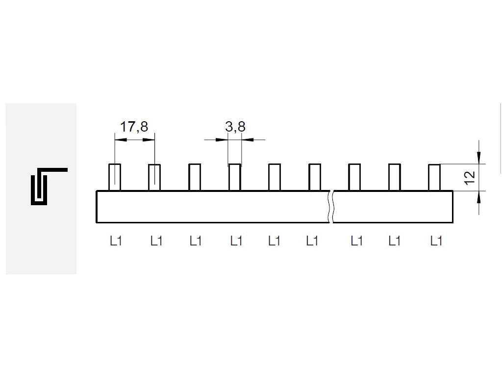 Prop. lišta S-1L-1000/10 ISO, kolík (jazýček), 1pól., 63A, rozteč 17,8mm, 10mm2, 1m, přip. míst = 57, rozměr kolíku 4x10,5mm, koncovka EK-C-1/10-16. Propojovací fázové lišty umožňují propojení modulových přístrojů (např. jističů, chráničů, modulových vypínačů apod.) jednoduchým a profesionálním způsobem. Standardní délky lišt jsou 210 mm (propojení 12ti modulů) nebo 1 metr. Tyto standardní rozměry lze libovolně krátit (konce lišt doporučujeme osadit plastovými koncovkami). Ve srovnání s klasickou instalací pomocí kabelových mostů nabízí propojovací lišty následující výhody: • spolehlivé přiřazení fází • zpřehlednění rozváděče • rychlejší instalace - úspora času • kompaktní rozměryDoplňkové parametry