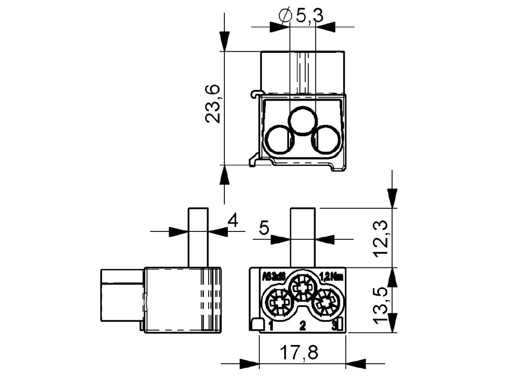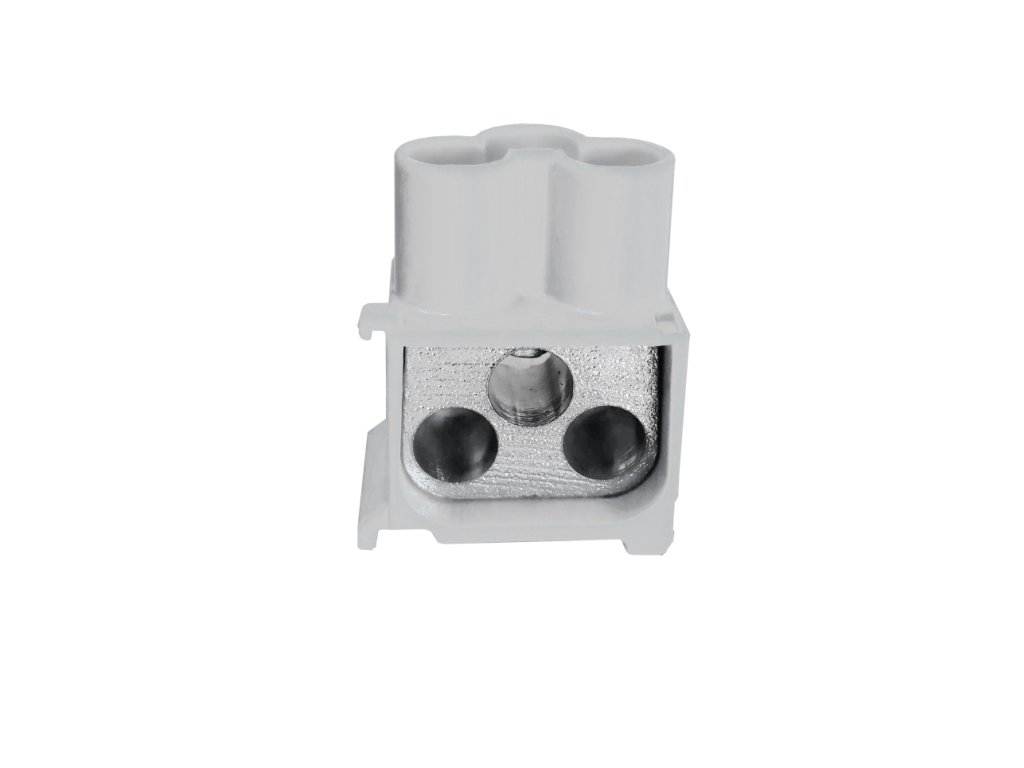 Svorka připojovací AS/3x16 SNK rozbočná, tvar konektoru - jazýček (kolík), 3x16mm2, 1modulová, (kódové označení výrobce 2010805), rozměry jazýčku (kolíku) 5x4x12,3mm, vestavná šířka 18mm, pro Al/Cu vodiče, jmenovitý proud 63A, jmenovité napětí 690V. Modulové přístroje mají od výroby omezené možnosti připojení. Proto byly vyvinuty přístrojové připojovací svorky AS, které vyřeší všechny potřeby pro montáž. Buďto umožňují připojení vodiče o větším průřezu a nebo rozšiřují počet připojovacích míst, respektive umožňují připojení Al vodiče. Ve většině případů se montují do horního přípojného místa modulového přístroje a tím nezabírají spodní svorku. Varianty v plastovém pouzdře zajistí ochranu před nebezpečným dotykem živých částí. Vestavná šířka je max. 17,8 mm (1modulové místo). Dostupné jsou jak typy s kolíkem, tak typy s vidličkou.Doplňkové parametry