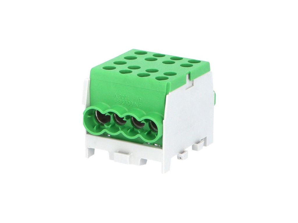 Svorkovnice rozbočovací HLAK 35-1/6 M2 GN, 125A, 1pól., AL/CU, IP20, zelená, na DIN/2080185. Univerzální rozbočovací (smyčkovací) svorkovnice HLAK typ M2 mohou být použity v rozváděčích nízkého napětí či v dalších aplikacích, kde potřebujeme připojit vstupní kabel a kabel(y) výstupní (smyčkování) a zároveň připojit k napájení přístroje osazeného uvnitř rozváděče. Speciální povrchová úprava svorky umožňuje připojení jak měděných tak hliníkových vodičů. Svorky jsou určeny pro montáž na nosnou lištu (DIN) a jsou řaditelné do sebe. Vodiče se do svorek po odizolování připevňují pomocí šroubového spojení. Šroub dosedá přímo na vodič, proto je nutné jemně slaněné vodiče opatřit dutinkou. Dutinka ale zvětší průřez vodiče a proto je nutné připojovat slaněné vodiče o řád menší než uvedené průřezy. U pevných vodičů toto není nutné. Hlavní přednosti: • Montáž na nosnou lištu • Ui až 1000 V AC/DC (ČSN EN 60998-1 ed. 2) • Menší rozměry oproti klasickým rozbočovacím svorkám • Krytí IP20 • Připojení měděných i hliníkových vodičů • Řaditelné do sebe • Široká nabídka typů a provedení • Barevné odlišení fází, nulového a ochranného vodičeDoplňkové parametry