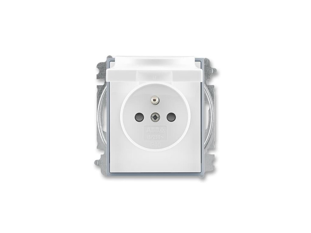 Zásuvka jednonásobná, chráněná, s clonkami a víčkem, s bezšroub. sv.; bílá/ledová šedáDoplňkové parametry