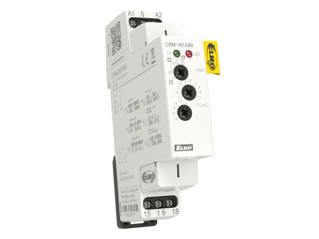 Multifunkční ekonomická verze časového relé pro univerzální využití v automatizaci, řízení a regulaci nebo v domovních instalacích. Univerzální napájecí napětí: AC 24 – 240 V (AC 50-60 Hz) a DC 24V. Komfortní a přehledné nastavování funkcí a časových rozsahů se provádí otočnými přepínači. Nastavitelný čas od 0.1 s do 10 hod. je rozdělen do 6-ti rozsahů: (0.1 s - 1 s / 1 s - 10 s / 0.1 min - 1 min / 1 min - 10 min / 0.1 h - 1 h / 1 h - 10 h ). Výstupní kontakt: 1x přepínací 8 A. Stav výstupu indikuje červená LED, která bliká nebo svítí v závislosti na stavu výstupu.Doplňkové parametry