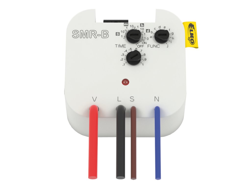 Super-multifunkční relé je výhodné a rychlé řešení změny standardního vypínače za časově ovládané tlačítko. POPIS Používá se do instalační krabice a pod tlačítko nebo vypínač do stávající elektroinstalace. Je vhodné pro spínání větších zátěží, něž u SMR-T, SMR-K, například impulsní relé, schodišťový automat, spínání topných žebříků v koupelnách. 10 funkcí ovládaných ovládacím vstupem. TECHNICKÉ PARAMETRY 4-vodičové připojení. Výstupní kontakt: 1x 16 A / 4000 VA, 250 V AC1. Je možné připojit zátěž R, L nebo C (včetně spínání zářivek a úsporných žárovek). Samostatný galvanicky oddělený vstup AC/DC 5-250 V (například pro ovládání ze zabezpečovacího systému).Doplňkové parametry