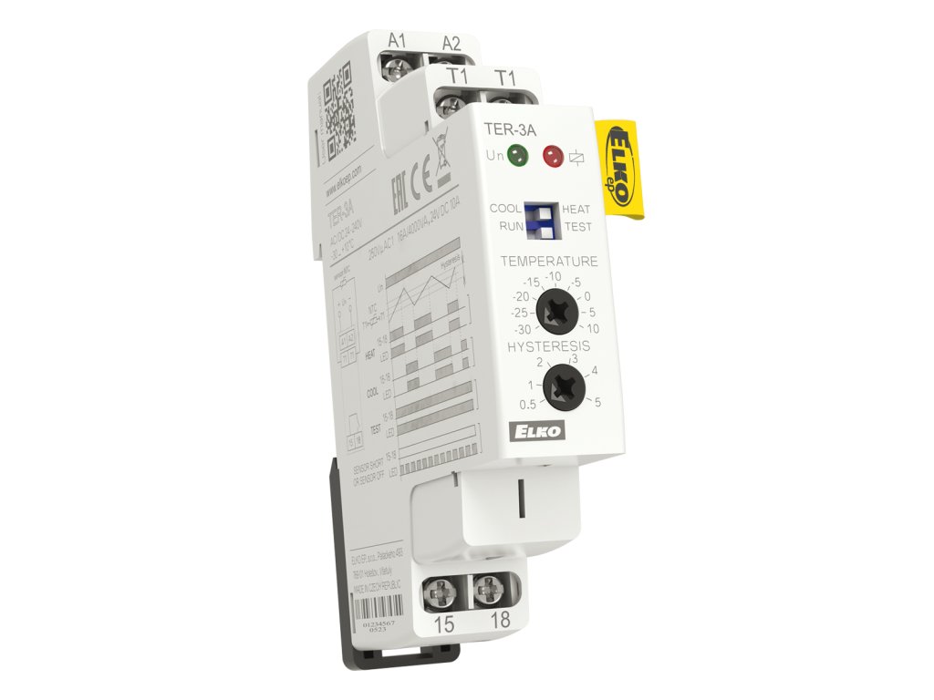 Používá se pro hlídání teploty chodníků, příjezdových cest, okapů, rozvaděčů, topných a chladicích systémů, kapalin, chladičů, motorů. POPIS Jednoduchý termostat pro hlídání a regulaci teploty v rozsahu -30…+10°C. Funkce hlídání zkratu nebo odpojení senzoru. Možnost nastavení funkce topení/chlazení. Nastavitelná hystereze (citlivost) spínání potenciometrem v rozsahu 0.5 – 5 °C. Výběr z externích senzorů teploty (termistor NTC) s dvojitou izolací ve standardních délkách 3, 6 a 12m. TECHNICKÉ PARAMETRY Univerzální napájecí napětí AC/DC 24 - 240 V. Výstupní kontakt: 1x spínací 16 A (AgSnO2). V provedení 1-MODUL, upevnění na DIN lištu.Doplňkové parametry