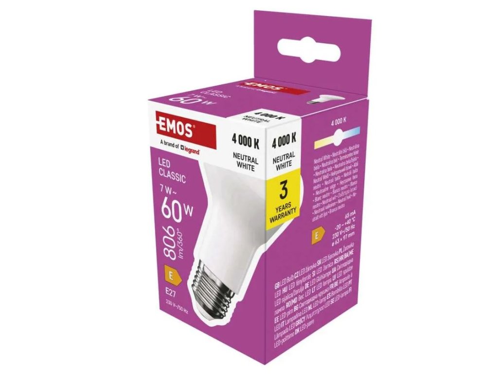 EMOS LED ŽÁROVKA E27 R63 7W NW ZQ7E43