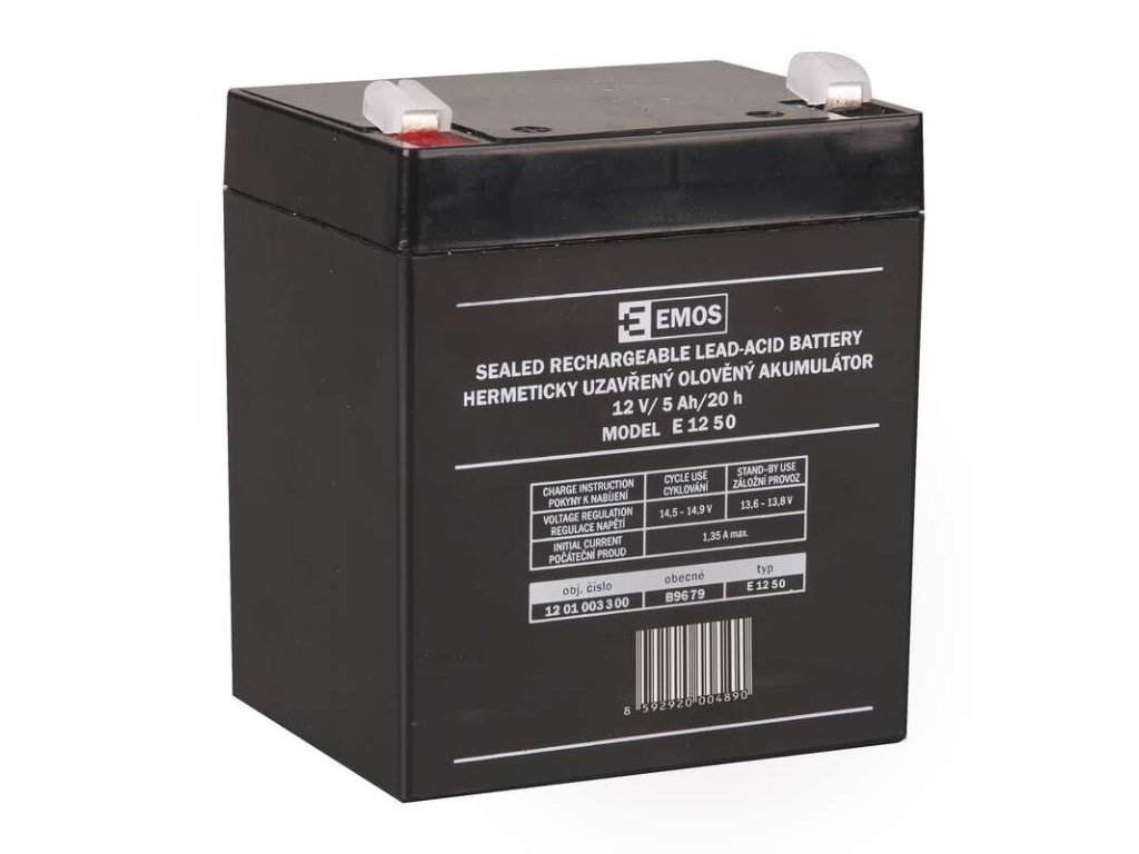 Akumulátor EMOS je vhodný jako náhradní baterie pro elektronické systémy - EZS (ústředny Jablotron) apod. Bezúdržbový ventilem řízený olověný akumulátor v provedení AGM umožňuje být používán v libovolné poloze. Optimální životnost v záložních systémech je 5 let.Doplňkové parametry