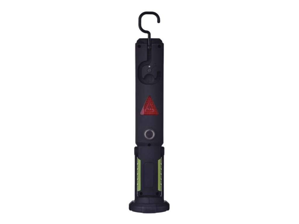 Vysoká svítivost, zadní červené světlo - varovný trojúhelník, napájecí Li-Ion akumulátor, hák a magnet na zavěšení. Univerzální plastová nabíjecí pracovní COB LED svítilna, která si najde své místo v každé domácnosti, dílně a všude tam, kde potřebujete zajistit širokou plochu osvětlení. Součástí je i varovný svítící LED trojúhelník, praktický hák a magnet pro zavěšení svítilny a napájecí zdroje do sítě i automobilu.Doplňkové parametry