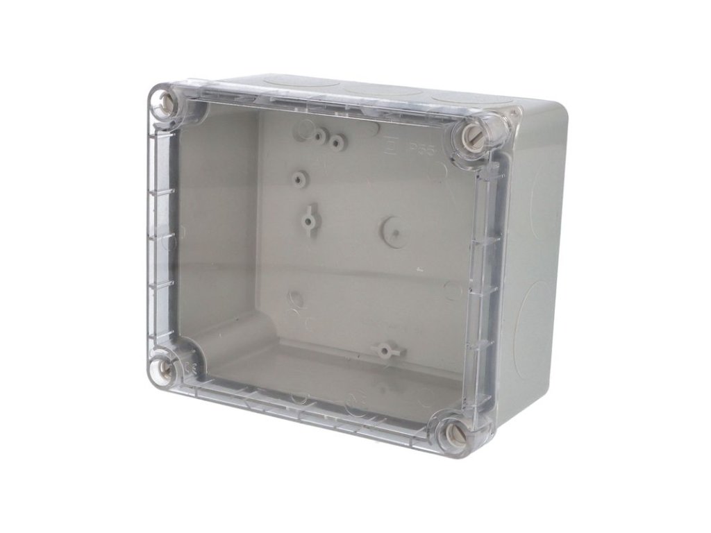Krabice AcquaBOX 3043 IP55 170x140x90mm, montáž na povrch, průhledné víko na šrouby, hladké boky. Plastová krabice AcquaBOX s hladkými boky v krytí IP55, rychlá a jednoduchá montáž - průhledné (transparentní) polykarbonátové víko na šrouby, odolnost proti mechanickým nárazům IK08, pro nástěnnou montáž (na omítku), barva šedá (RAL 7035), samozhášivý, bezhalogenní UV odolný materiál (ABS), otvory do krabice se provádějí vyvrtáním otvoru a následně se osadí vývodka. Splňuje požadavky norem ČSN EN 60670-1, zkouška žhavou smyčkou 650°C (pro montáž na hořlavé podklady je nutné použít nehořlavou podložku), pro rozsah teplot od -25°C do +85°C.Doplňkové parametry