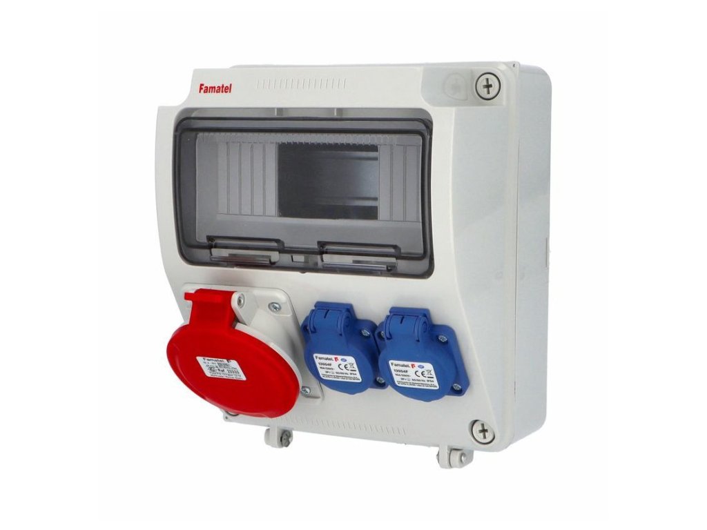 Zásuvková skříň FAMATEL v006-ZSF10000000.V /3927 IP54 pouze vydrátovaná, zásuvka 1x230V, použité pouzdro: 3927 - 305x125x107mm, barva: světle šedá. Zásuvková skříň (rozváděč nízkého napětí) FAMATEL v006-ZSF10000000.V /3927 IP54 pouze vydrátovaná, zásuvka 1x230V/16A (s ochranným kolíkem dle ČSN), použité pouzdro: 3927 - celkem k dispozici 6mod. míst, rozměry: 305x125x107mm, plastová, materiál ABS, IK08, zkouška žhavou smyčkou 650°C, bezhalogenová a UV odolná, montáž na povrch, barva: světle šedá, rozsah teplot -25°C +85°C, aplikované normy: ČSN EN 62208, balení: 1ks (fólie), zásuvky na 230V/16A s ochranným kolíkem dle ČSN, polykarbonátové okénko, PE svorkovice součástí (6x16mm2), N svorkovice součástí (6x16mm2), hladké stěny (bez prolisů) pro vyvrtání vstupního otvoru a následné osazení příslušnou vývodkou (pro CYKY 5x6; 4x10; 5x10 => M25; pro CYKY 5x16 => M32).Doplňkové parametry