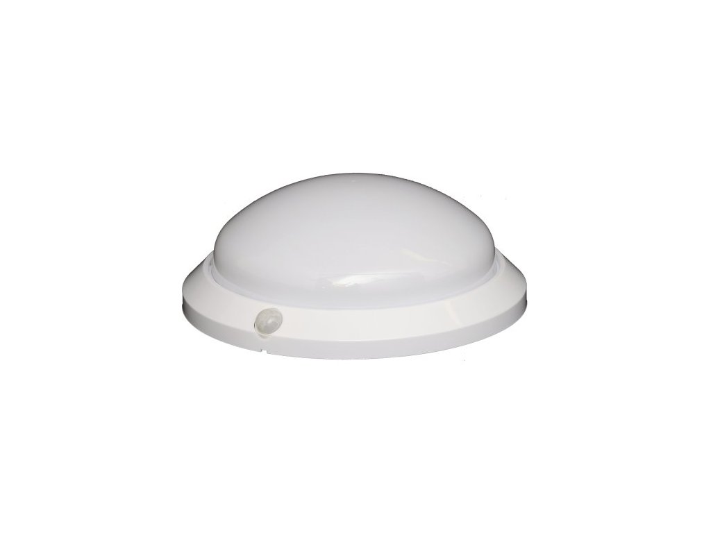 Přisazené, venkovní nebo interiérové, stropní nebo nástěnné svítidlo s plastovým kulatým stínítkem. Svítidlo je osazeno infračerveným pohybovým senzorem s 100 stupňovým úhlem detekce pohybu. Plastové opálové stínítko zajišťuje ideání rozptyl světla a zabraňuje oslnění. Rozměry: průměr 305mm, výška 105mm Spotřeba v pohotovostním režimu: cca 0,9WDoplňkové parametry