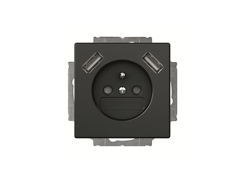 Zásuvka 1násobná s kolíkem, s clonkami, s nabíjením 2x USB-A; mechová černá; 20 MUCB2USB-A-885-500Doplňkové parametry
