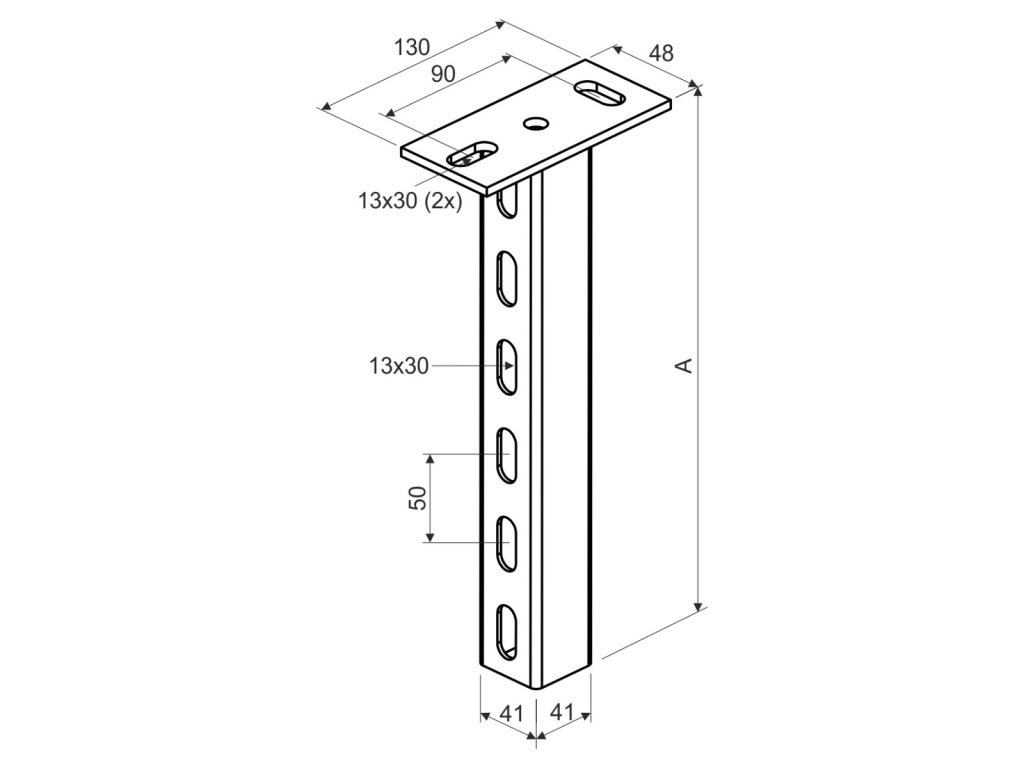 Stropní profil střední pro zavěšení ze stropu pomoví výložníků, délka 600 mm, povrchová úprava žárový zinekDoplňkové parametry