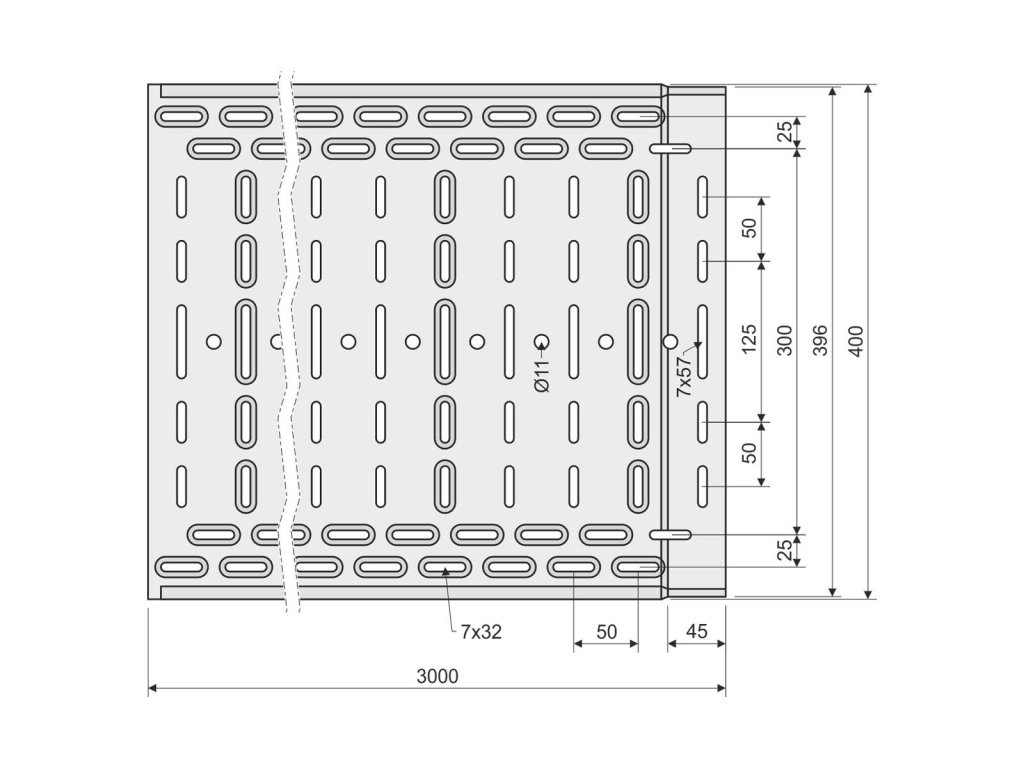 Kabelový žlab s integrovanou spojkou KZI 60x400 z plechu tloušťky 1,00 mm v povrchové úpravě sendzimir, děrovaný, opatřený embosy pro zvýšení pevnosti a tuhosti.Doplňkové parametry