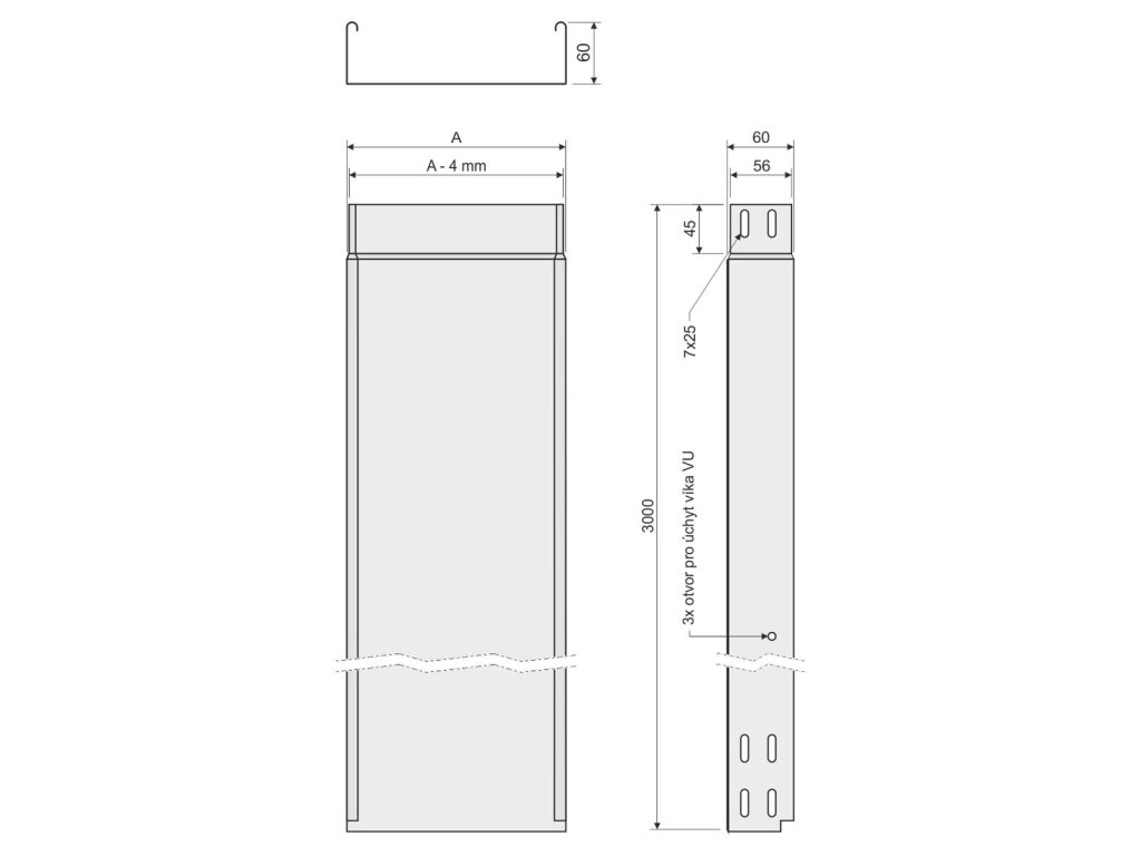 Kabelový žlab s integrovanou spojkou KZIN 60x100 z plechu tloušťky 0,75 mm v povrchové úpravě žárový zinek, neděrovaný.Doplňkové parametry