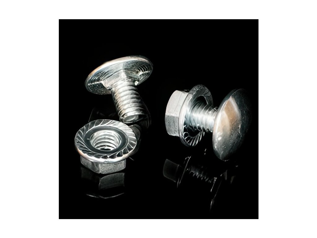 Šroub s vratovou hlavou a nízkým čtyřhranem pro spojování jednotlivých komponentů kabelových nosných systémů, součástí je též matice s integrovanou podložkou s drážkováním povrchová úprava geometDoplňkové parametry