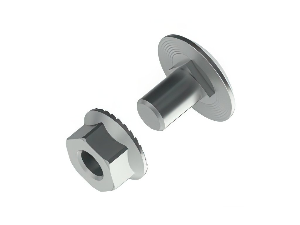 Šroub s vratovou hlavou a nízkým čtyřhranem pro spojování jednotlivých komponentů kabelových nosných systémů, součástí je též matice s integrovanou podložkou s drážkováním povrchová úprava zinkochromátDoplňkové parametry