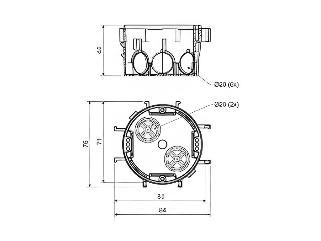 KP 67/2 - KRABICE PŘÍSTROJOVÁ, konfigurace KA, barva ŠEDÁ, balení - 90 ks - pro moderní instalace ve sdružených rámečcích, spojení ve svislém i vodorovném směru s roztečí 71 nebo 81 mm, možnost spojení až 5 krabic vedle sebe, možnost zvětšení osové vzdálenosti distanční rozpěrkou pro designovou řadu přístrojů Element, NeoDoplňkové parametry