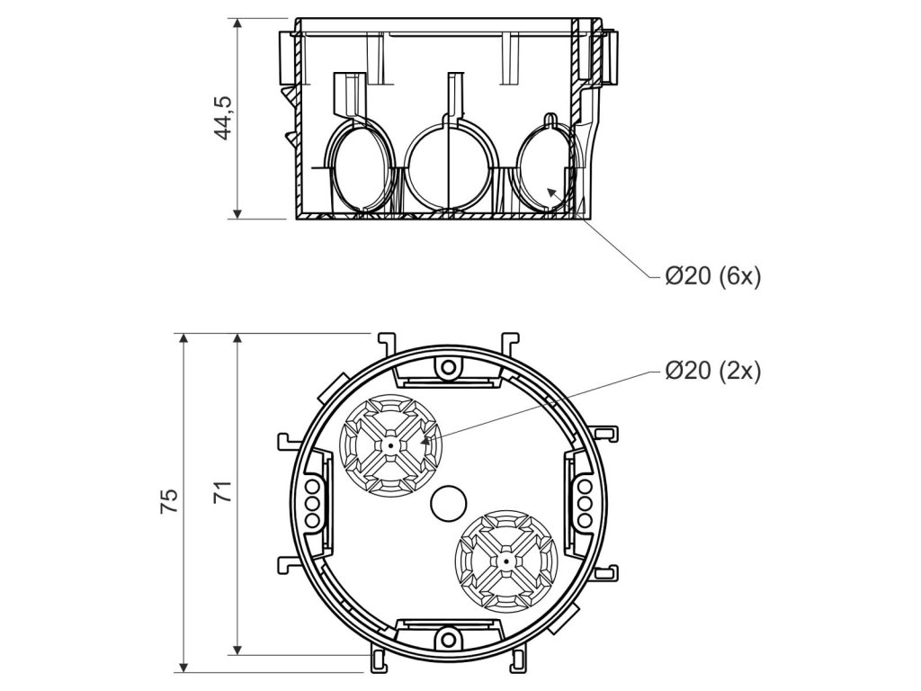 KP 67/3 - KRABICE PŘÍSTROJOVÁ, konfigurace KA, barva ŠEDÁ, balení - 100 ks - možnost spojení ve svislém i horizontálním směru, možno spojit až 5 krabic, vhodné pro 2x dvojnásobné rámečkyDoplňkové parametry