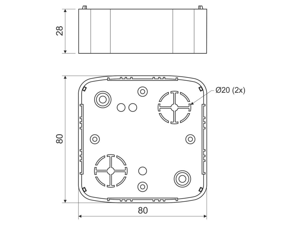 LK 80X28 T - KRABICE LIŠTOVÁ, konfigurace I2, barva IMITACE/DUB TMAVÝ, balení - 10/100 ks - určené pro přístroje modelové řady Tango s velkou montážní hloubkou, pro instalaci na materiály třídy reakce na oheň E nebo F použijte izolační podložku, odstín pro instalace k lištám v odstínu I2 a TDDoplňkové parametry