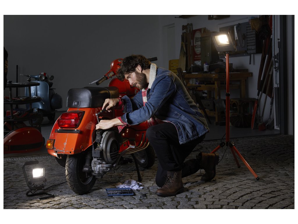 Flexibilní, přenosné pracovní světlo. Vlastnosti výrobku: Pracovní světlo s otočnou hlavou. Stupeň krytí, hlavice svítidla a pouzdro: IP65, stupeň krytí, zástrčka: IP44. Rychlospojka pro nastavení úhlu osvětlovací hlavice. 2 m kabel se zástrčkou E/F. Výhody výrobku: Optimalizovaná hmotnost a velikost kvůli kompaktnosti designu. Úspora energie až 80 % v porovnání s pracovními svítidly s halogenovými světelnými zdroji. Kryt z polomatného temperovaného skla pro rovnoměrné osvětlení. Oblasti použití: Renovace. Garáže. Suterén. Dílny. Výbava / příslušenství: Včetně kompletního příslušenství pro montáž a zapojení. Bezpečnostní informace: Výrobek v třídě ochrany I. Všechny elektricky vodivé, kovové části pouzdra, které mohou během provozu nebo údržby v případě poruchy absorbovat napětí, musí být trvale připojeny k ochrannému zemnicímu vodiči.. Aby se zabránilo riziku uškrcení, musí být dlouhý flexibilní kabel tohoto svítidla vhodně připevněn ke stěně..Doplňkové parametry