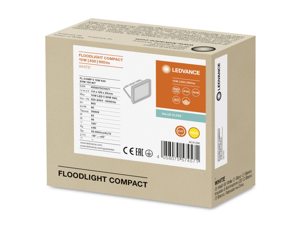 Reflektor se světelným výkonem až 1 000 lm. Vlastnosti výrobku: Symetrické vyzařování na základě technologie reflektorů s úhlem vyzařování 100° × 100°. Montážní konzola s 30° úhlem a širokou rotační plochou. Předinstalovaný flexibilní 1m kabel (H05RN-F), 3 × 1,0 mm2 jednotlivé vodiče, obalené. Výhody výrobku: Robustní, přesto lehký a kompaktní design. Bezpečné a velmi rovnoměrné osvětlení díky difuzoru s matným a tvrzeným sklem. Nulová hodnota horní účinnosti svítidla (ULOR 0 %) při montáži v náklonu 0°. Úspora energie až 90 % ve srovnání s halogenovými reflektory. 3letá záruka. Oblasti použití: Náhrada za reflektory s halogenovými žárovkami. Venkovní použití (IP66). Veřejné prostory. Fasády budov. Zahrady, balkony a další venkovní prostory. Stavební plochy. Bezpečnostní informace: Externí flexibilní kabel tohoto svítidla nelze vyměnit. Pokud je kabel poškozen, je nutné svítidlo vyřadit z provozu a zlikvidovat ho.. Svorkovnice není součástí dodávky. Instalaci musí provést kvalifikovaná osoba.. Pozor – nebezpečí úrazu elektrickým proudem.. Výrobek v třídě ochrany I. Všechny elektricky vodivé, kovové části pouzdra, které mohou během provozu nebo údržby v případě poruchy absorbovat napětí, musí být trvale připojeny k ochrannému zemnicímu vodiči..Doplňkové parametry