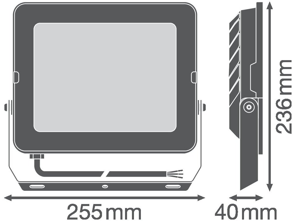 Reflektor se světelným výkonem až 9000 lm. Vlastnosti výrobku: Symetrické vyzařování na základě technologie reflektorů s úhlem vyzařování 100° × 100°. Ochrana proti přepětí: až 4 kV (L/N-PE), 2 kV (L-N). Montážní konzola s 30° úhlem a širokou rotační plochou. Předinstalovaný flexibilní 1m kabel (H05RN-F), 3 × 1,0 mm2 jednotlivé vodiče, obalené. Prodyšná membrána pro optimální výměnu vzduchu, bez dopadu na stupeň krytí IP. Výhody výrobku: Robustní, přesto lehký a kompaktní design. Bezpečné a velmi rovnoměrné osvětlení díky difuzoru s matným a tvrzeným sklem. Nulová hodnota horní účinnosti svítidla (ULOR 0 %) při montáži v náklonu 0°. Úspora energie až 90 % ve srovnání s halogenovými reflektory. 3letá záruka. Oblasti použití: Náhrada za reflektory s halogenovými žárovkami. Venkovní použití (IP66). Veřejné prostory. Fasády budov. Zahrady, balkony a další venkovní prostory. Stavební plochy. Bezpečnostní informace: Max. plocha do větru 0,043 m2. Externí flexibilní kabel tohoto svítidla nelze vyměnit. Pokud je kabel poškozen, je nutné svítidlo vyřadit z provozu a zlikvidovat ho.. Svorkovnice není součástí dodávky. Instalaci musí provést kvalifikovaná osoba.. Pozor – nebezpečí úrazu elektrickým proudem.. Výrobek v třídě ochrany I. Všechny elektricky vodivé, kovové části pouzdra, které mohou během provozu nebo údržby v případě poruchy absorbovat napětí, musí být trvale připojeny k ochrannému zemnicímu vodiči..Doplňkové parametry
