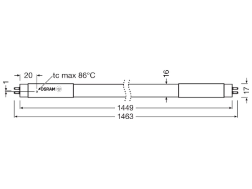 LED trubice pro elektronické vysokofrekvenční předřadníky. Vlastnosti výrobku: Výměna stávajících zářivek T5 v instalacích s vysokofrekvenčními předřadníky. Trubice světelného zdroje vyrobená ze skla s ochranou proti střepinám pro aplikace v potravinářském průmyslu. Vysoká konzistence barev: ? 5 sdcm. Životnost: až 50.000 h. Nízké blikání podle EU 2019/2020 (SVM ? 0,4 / PstLM ? 1). Stupeň krytí: IP20. Kompatibilní s mnoha běžnými elektronickými předřadníky (viz také compatibility list). Výhody výrobku: Žádné ohýbání díky skleněné trubici. Rychlá, snadná a bezpečná výměna bez přepojování. Vysoká svítivost u sofistikovaných světelných řešení. Vhodné i pro provoz při nízkých teplotách. Oblasti použití: Celkové osvětlení v teplotách -20…+45 °C. Kanceláře, veřejné budovy. Supermarkety a obchodní domy. Průmysl. Právní informace: Při použití jako náhrada zářivky T5 závisí celková energetická účinnost a rozložení světla na konstrukci osvětlovacího systému.. Bezpečnostní informace: Ve vhodných svítidlech odolných proti vlhkosti je možné venkovní použití v souladu s údaji uvedenými v technickém listu a návodu k instalaci.. Rozsah provozních teplot LED trubice je omezený. V případě pochybností o vhodnosti aplikace změřte před instalací teplotu Tc na výrobku.. Všechna elektrická připojení musí provést kvalifikovaná osoba.. Nevhodné pro nouzové osvětlení..Doplňkové parametry